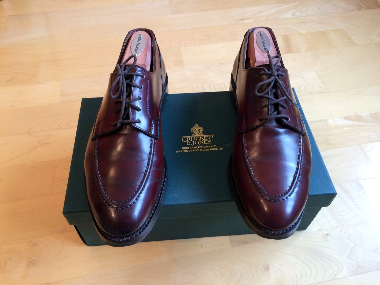 Crockett & Jones, mod. Onslow. p. 7 UK, last 325. Shell cordovan. $324 à négocier. Vendeur européen, que je soupçonne même d’être français (il vend aussi des Weston et des Heschung).