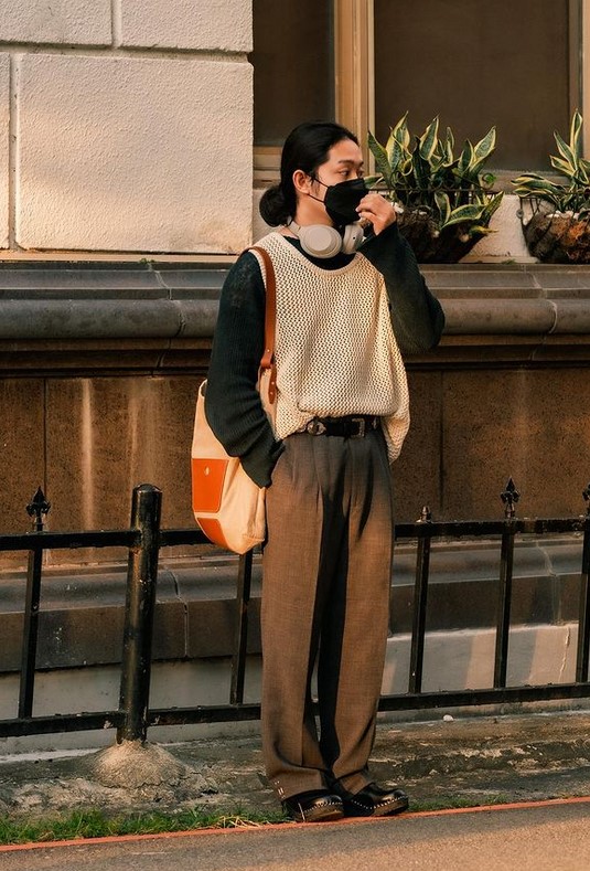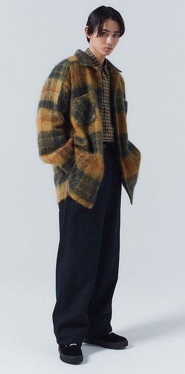 Le motif est déjà assez fort mais combiné aussi au pull poil long je trouve ça vraiment cool. Le gilet blanc/crème permet de casser un peu la transition et c’est pas plus mal. Cela rajoute aussi un peu de contraste pour démarquer l’ensemble.