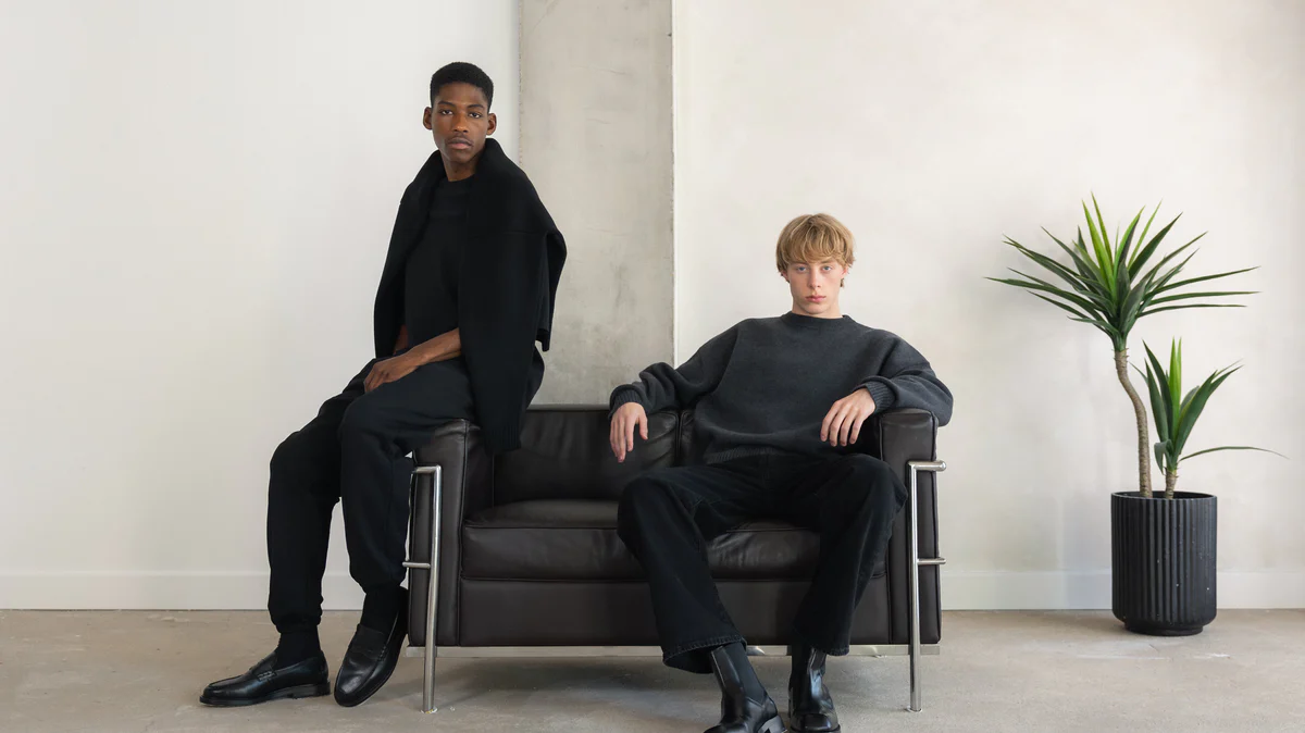On y retrouvera le pull loose-oversized à épaule tombante en laine mérinos du premier drop, fabriqué en Angleterre (même fabricant que Studio Nicholson), dans deux nouveaux coloris : gris mélangé, et noir (en plus de l’écru initial).