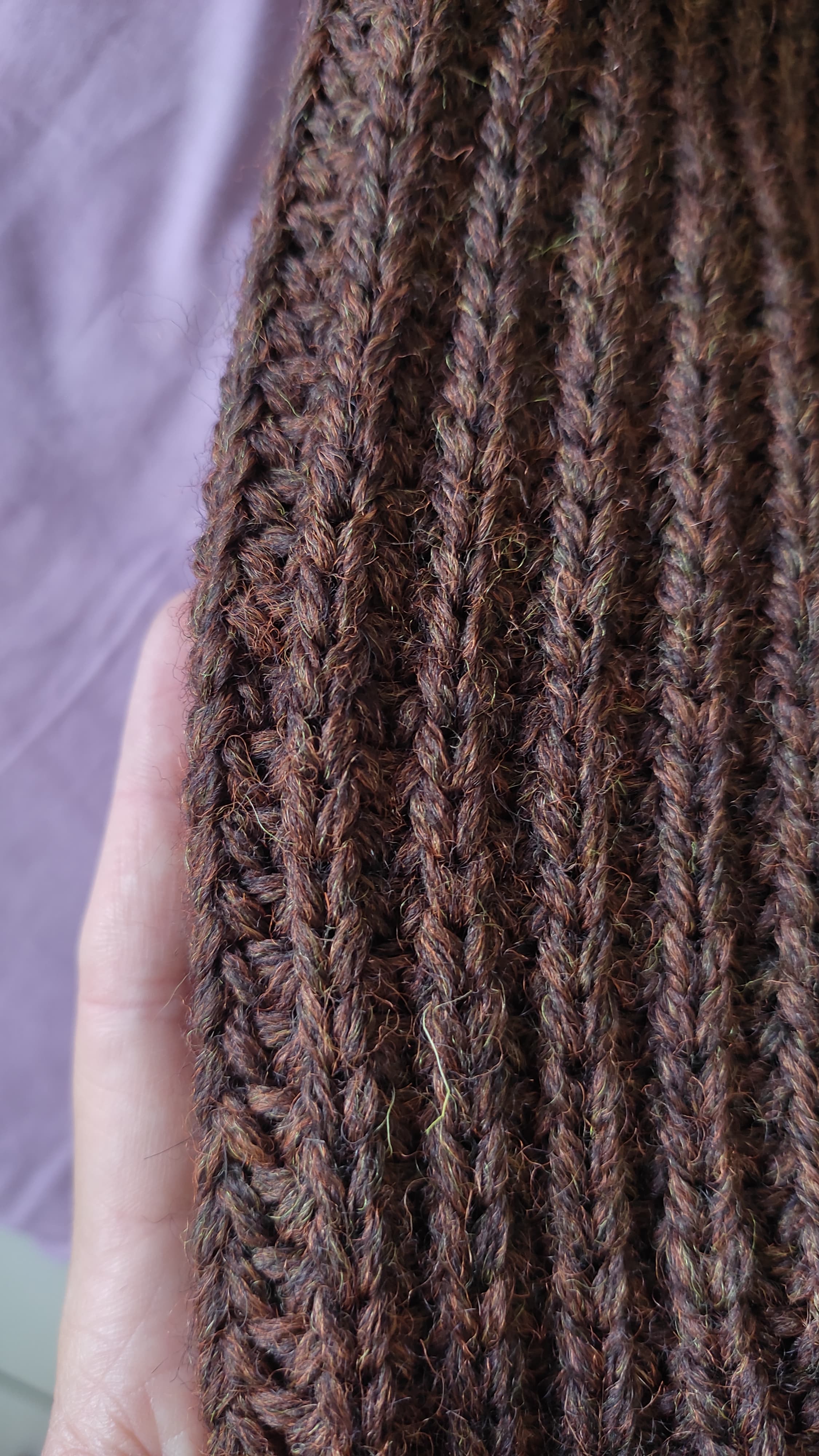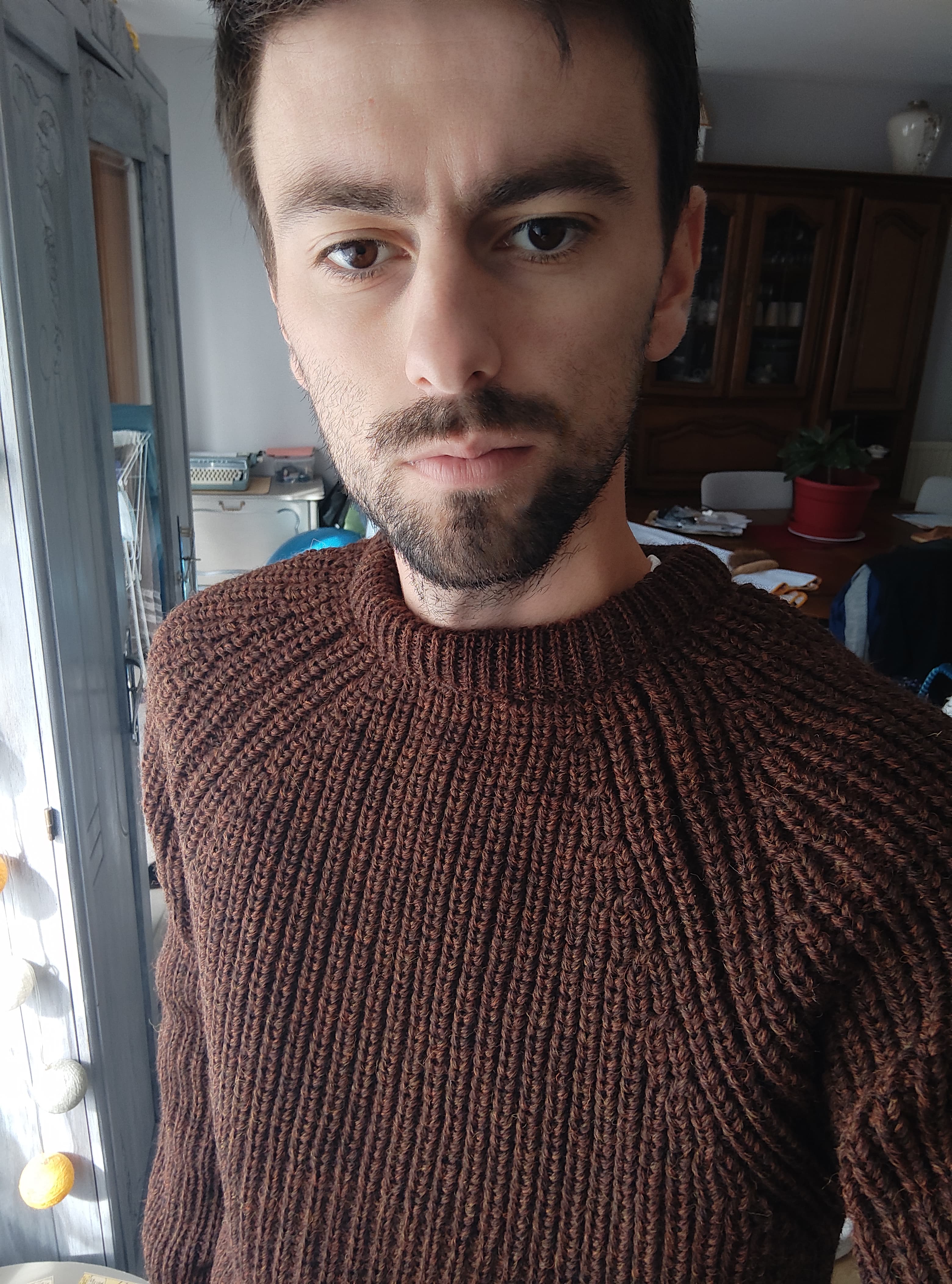 Le pull a carrĂ©ment une Vibe Peregrine au niveau de la coupe, du sizing et de la laine mais le point de tricot sur celui ci est assez diffĂ©rent (alternance de points cardigans et de je ne sais pas quoi). Point positif en comparaison, les bords cĂŽtes sont pas trop longs. Le coloris marron / rouille me plaisait beaucoup aussi. Jâai pris mon S habituel et câest nickel, comme un peregrine. Pas de taxe, reçu par Colissimo. Jâai contactĂ© le patron par insta alors il a peut ĂȘtre sous dĂ©clarĂ© je nâen sais rien.
