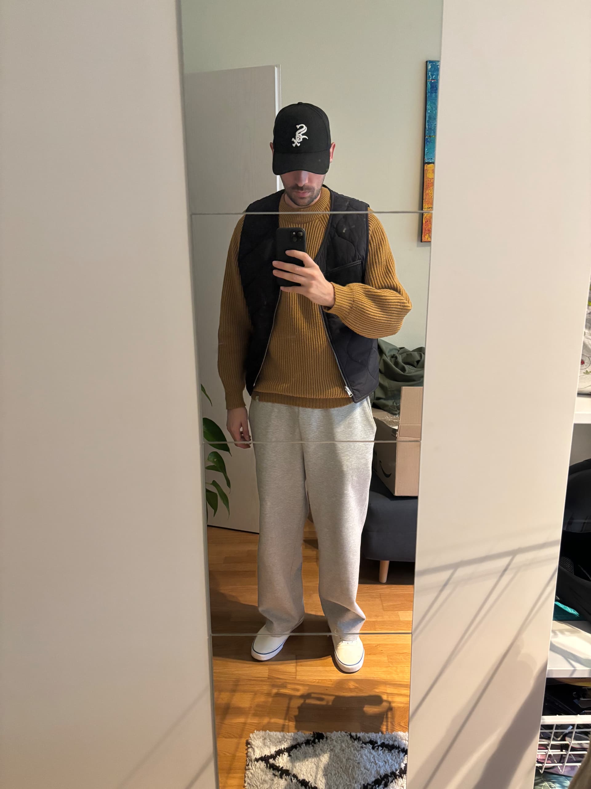 Ça faisait longtemps qui était dispo avec toute les tailles. J’attendais que le prix baisse toujours plus. Et aussi parce que la couleur était un risque, comme je mets que du kaki (et marron) l’hiver. C’est le pantalon plus ou moins vert qui me fait penser que le kaki doit marcher avec. Je suis presque jamais influencé par un look, d’habitude. Encore moins dans ce sens-la.