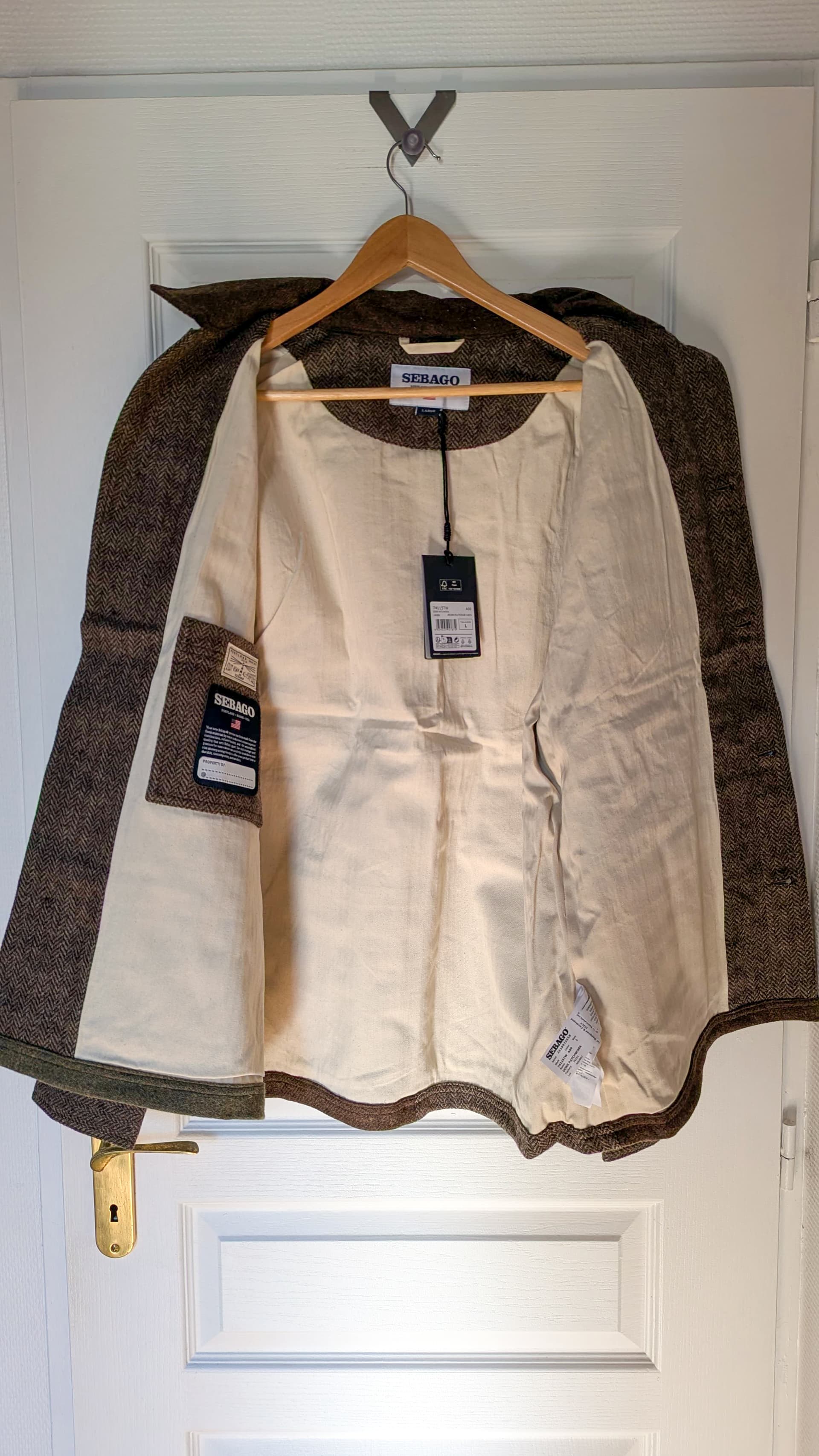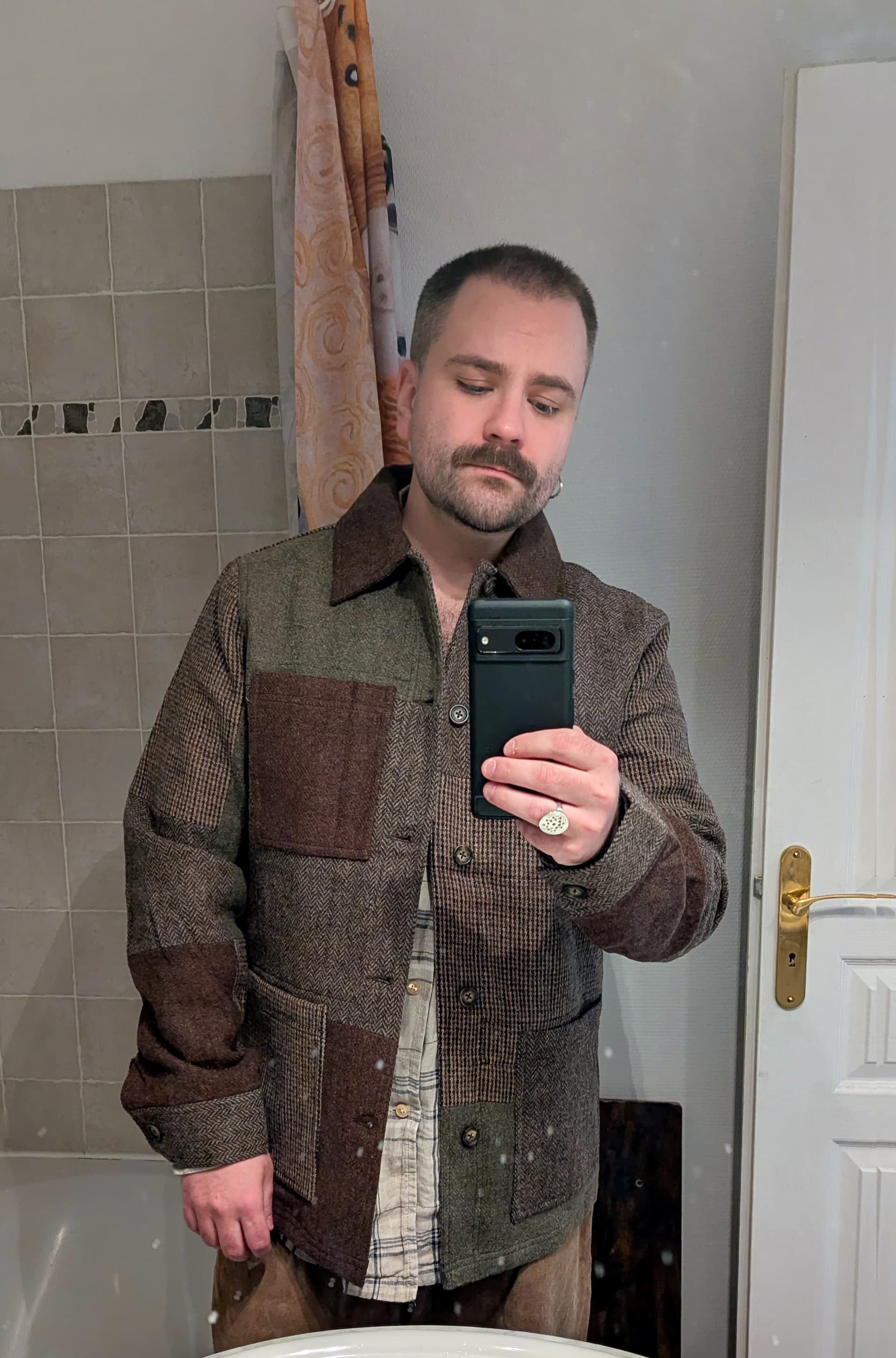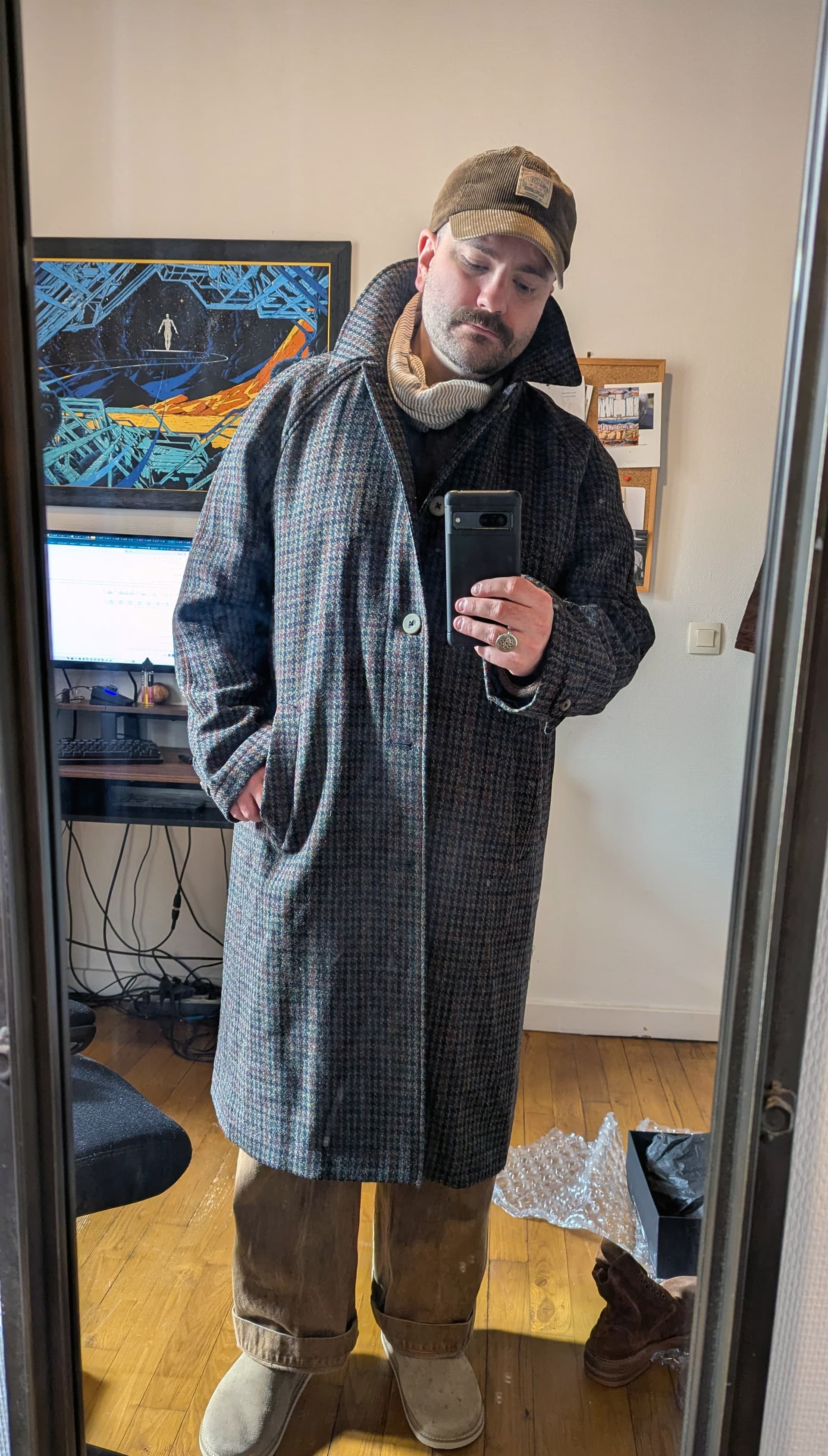 Par contre comme je le craignais c’est épais comme un sandwich SNCF. Drap de laine très fin en double couche et une simple doublure sans padding. Ca ne correspond pas du tout à ce que je recherche, et ca repart.