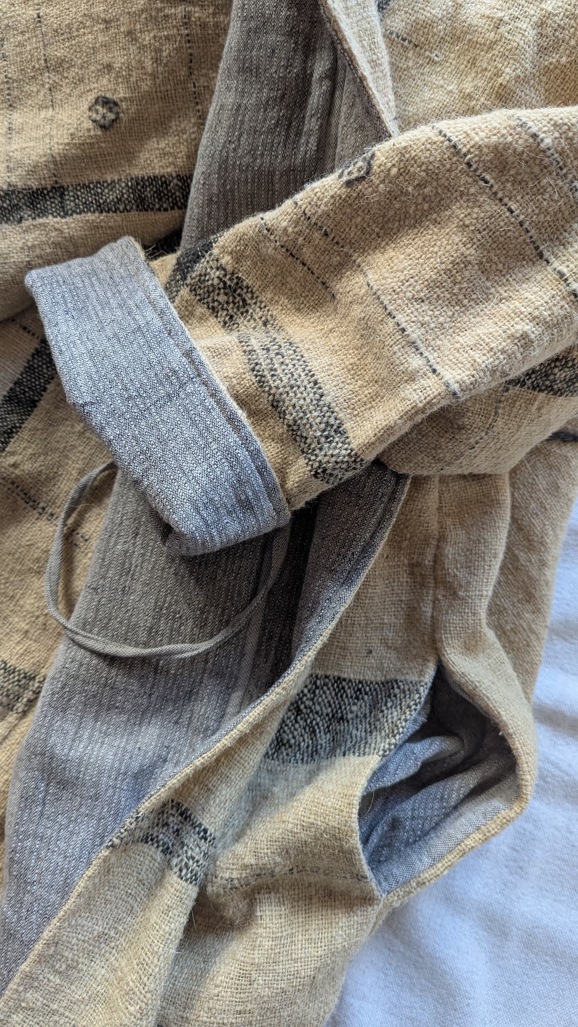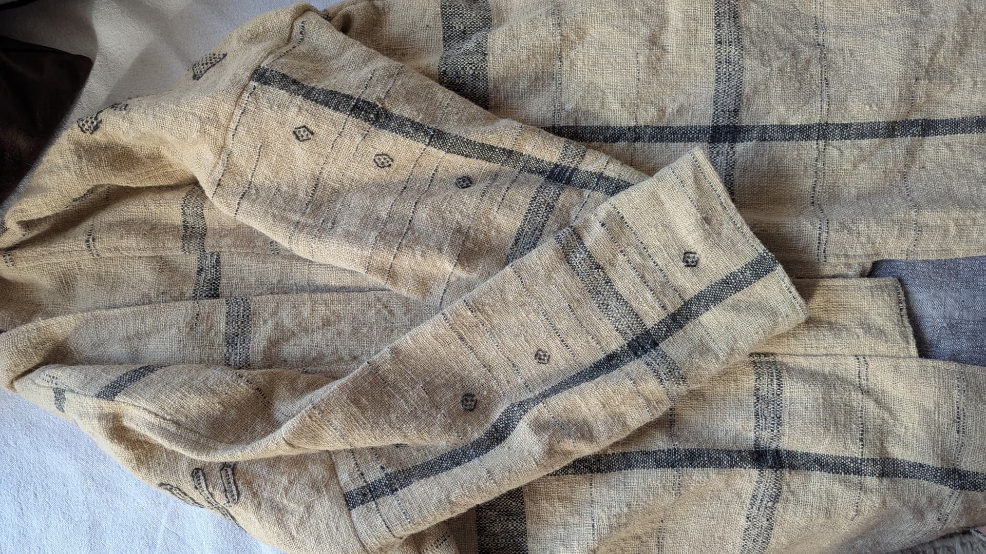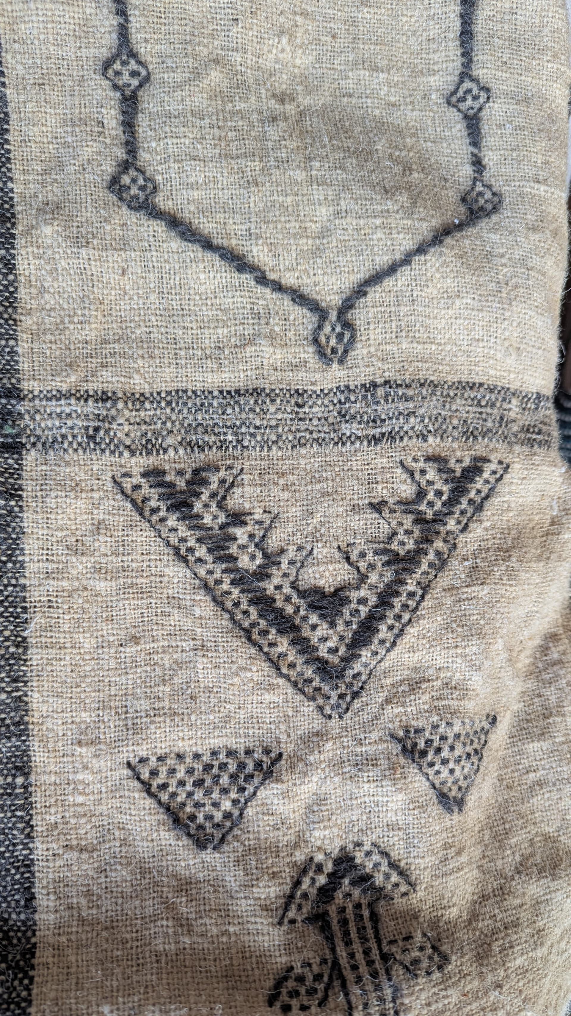 Globalement, ca fait le taf. C’est vraiment du tissage artisanal et brut, comme vous pouvez le voir en photo, rêche au toucher comme de la jute (ca tombe bien c’est exactement ce que je cherchais). Les finitions derrière la doublure sont loin d’être nickel.