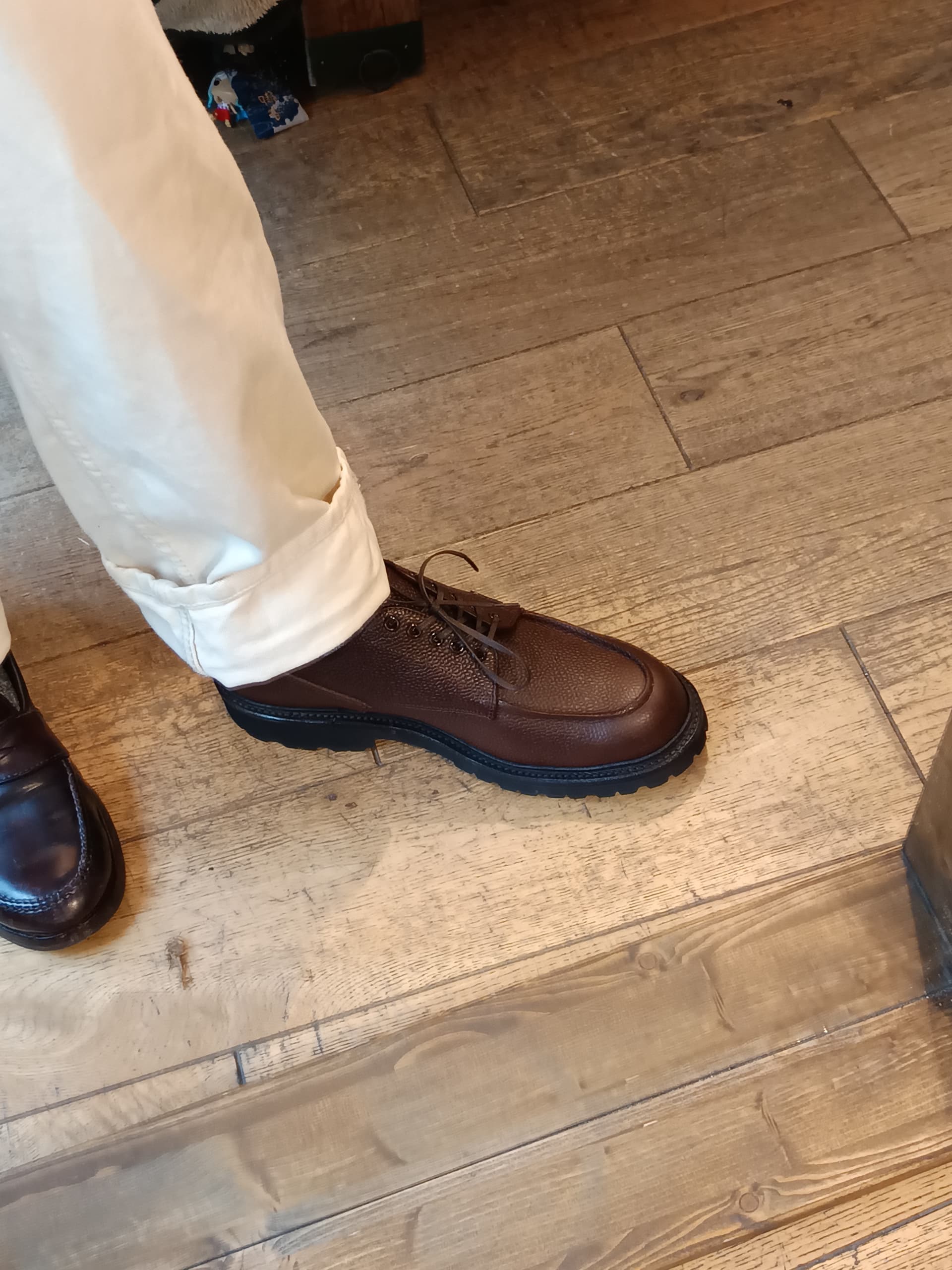 Pour ce qui est de la paire de Derby elle a lâair plutĂŽt bien construite, avec de bonne finissions (je vous sort ça mais jâai 0 compĂ©tences de bottier hein). Le cuir est pas trop merdique, plutĂŽt agrĂ©able au portĂ© et au visuel.
