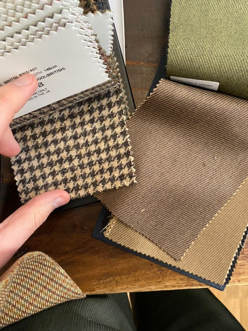 La commande sera donc une veste de chasse norfolk en tweed pied de poule 370gr/ml de chez Abraham Moon, super drapier anglais qui fait des tweeds, des lambswools et des shetland pas cher du tout et un pantalon en cavalry twill de la liasse Dakota de H&S.