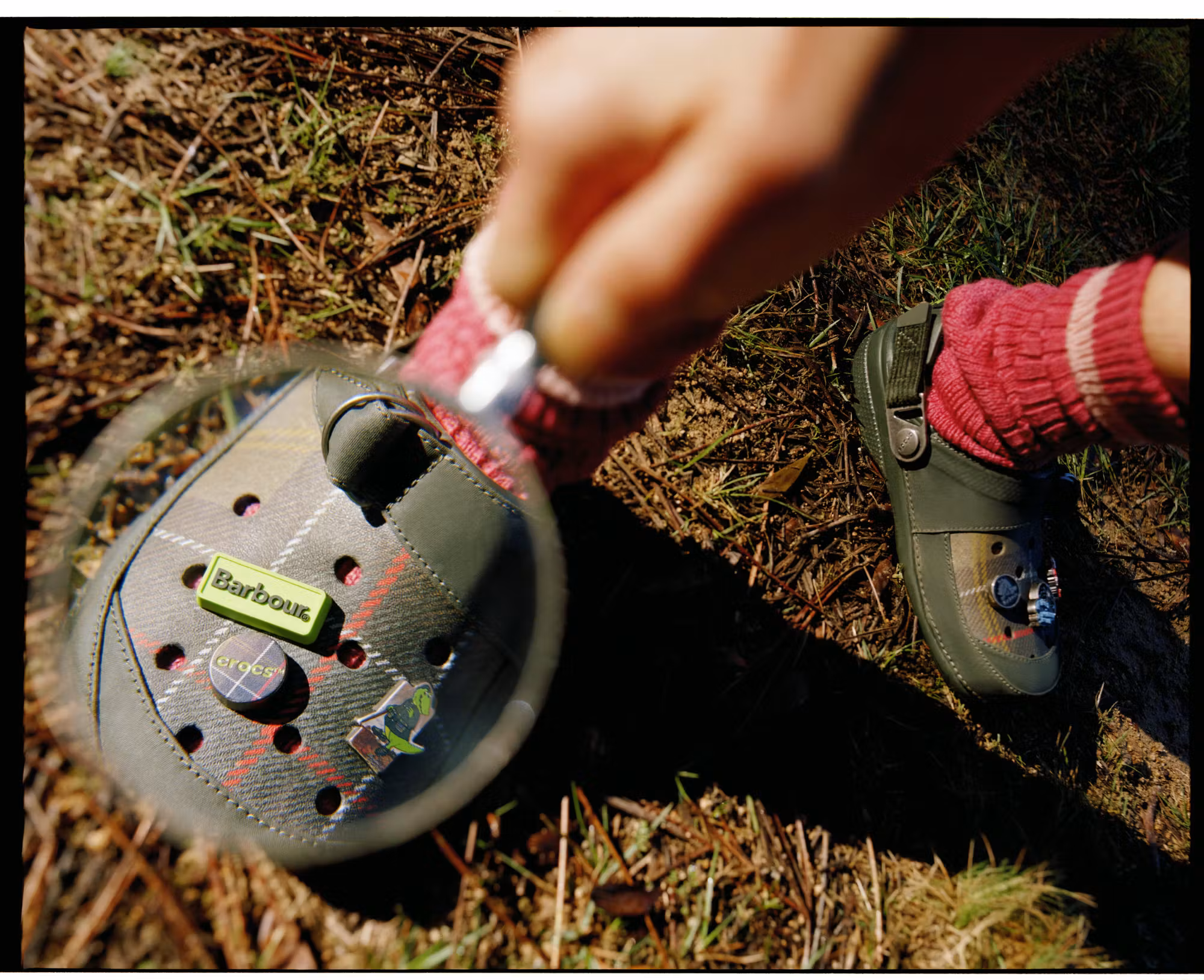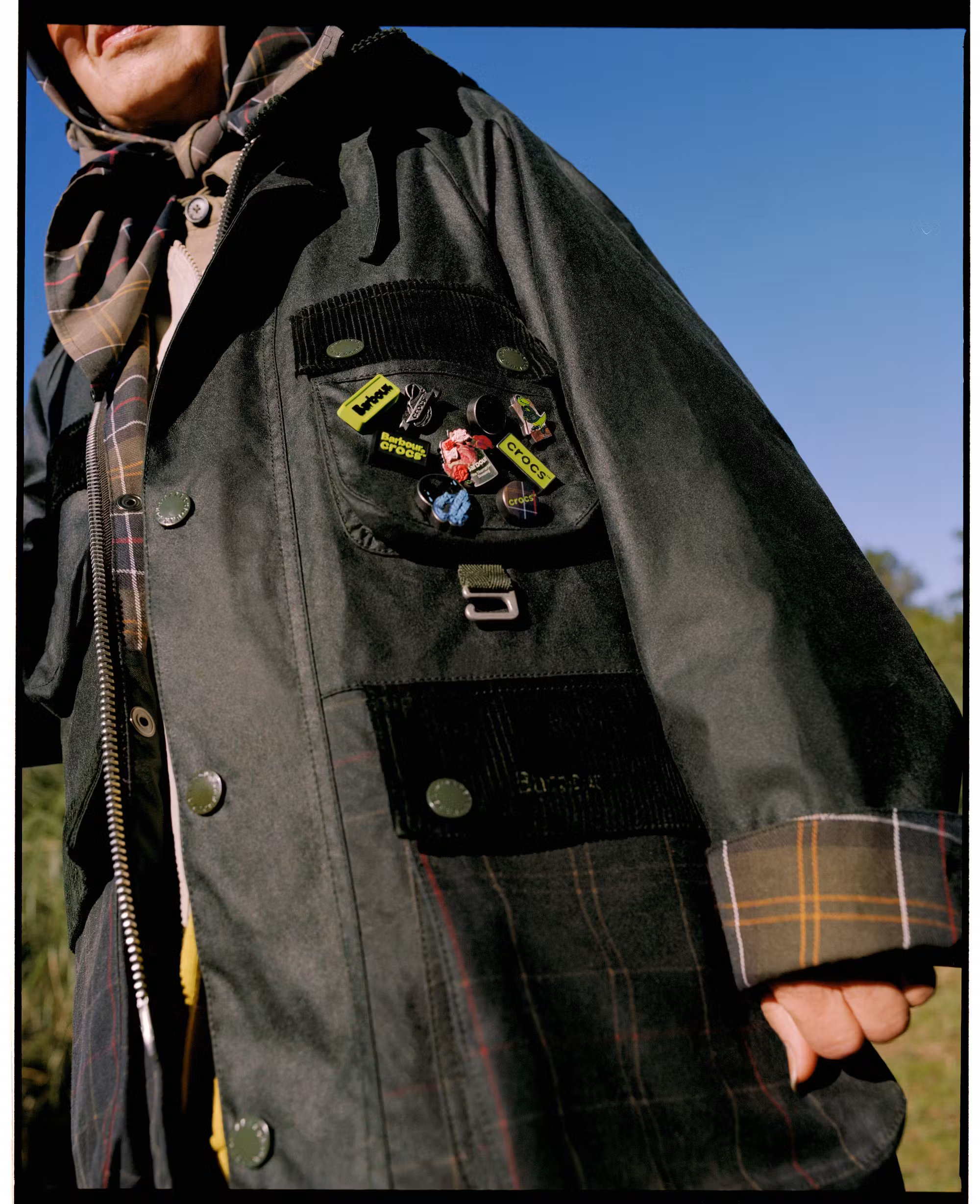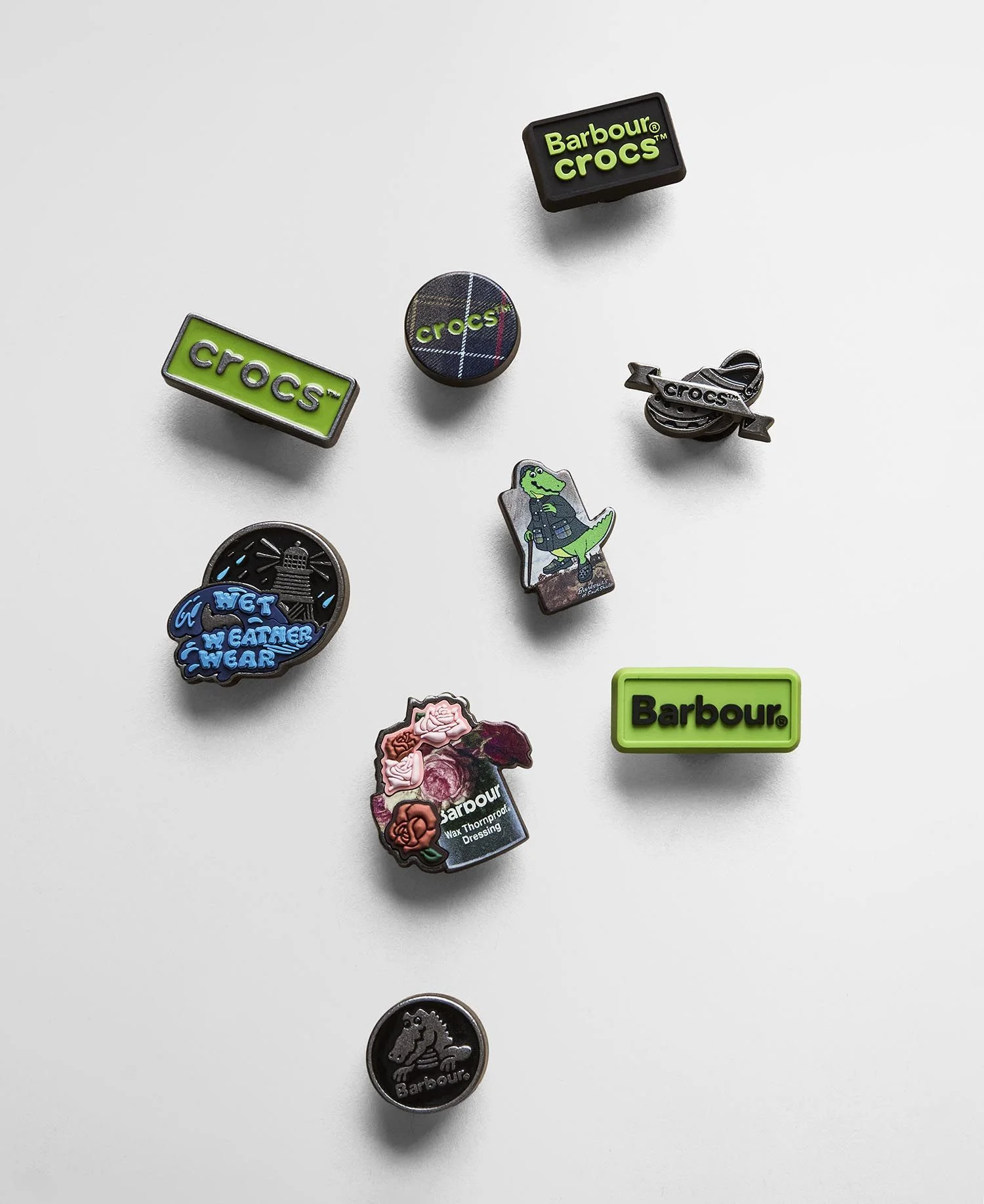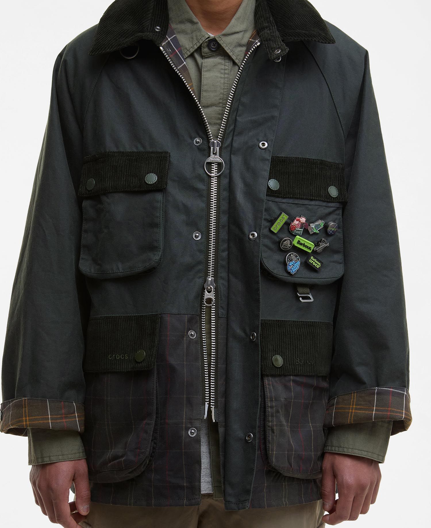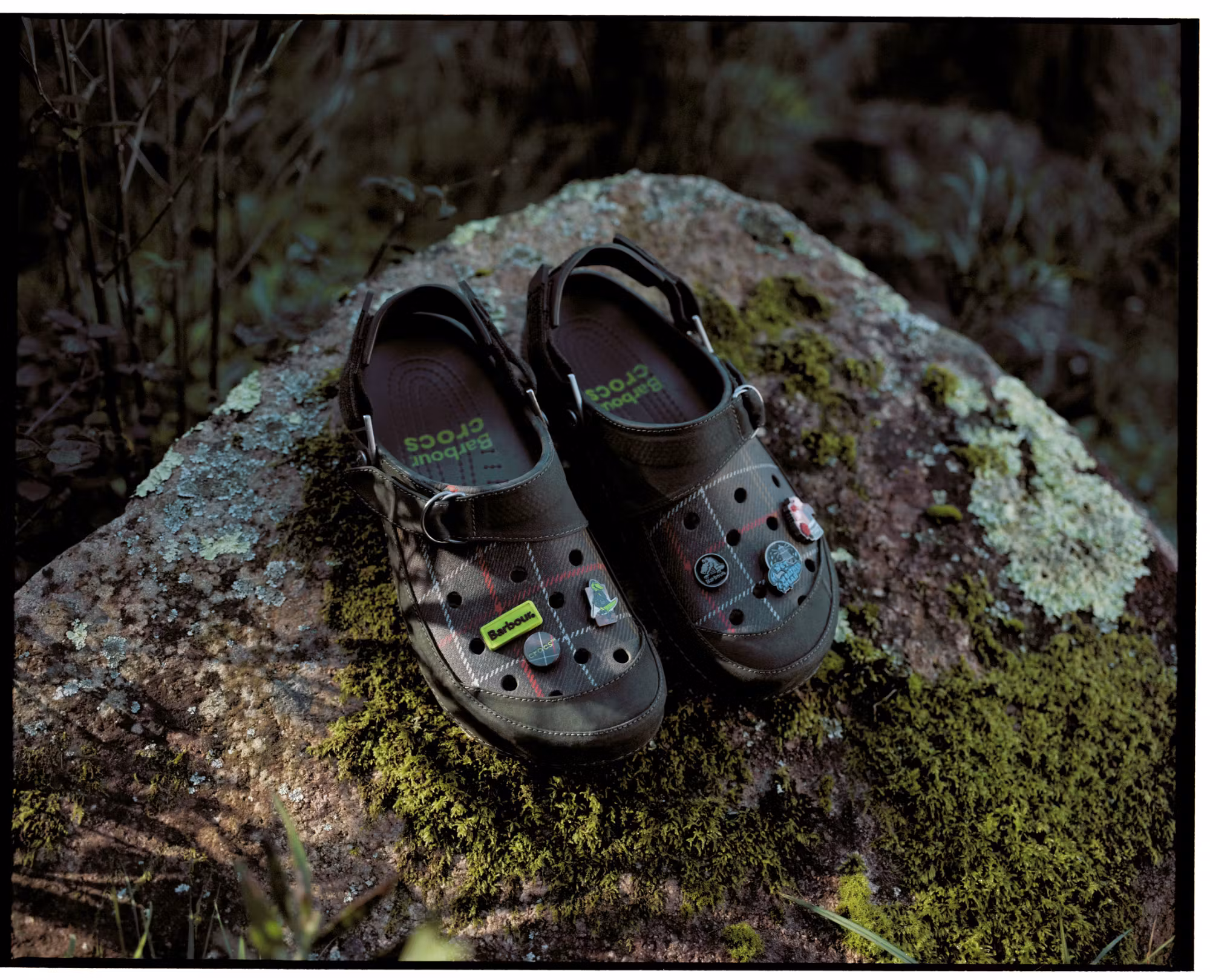 Crocs & Barbour ont sorti plus tÎt cette semaine une micro capsule incluant : une Bedale customisée, une paire de Classic Clogs, une paire de bottes, accompagnés de 9 Jibbitz exclusifs (les sortes de pins qui se fichent dans les trous des Crocs).
