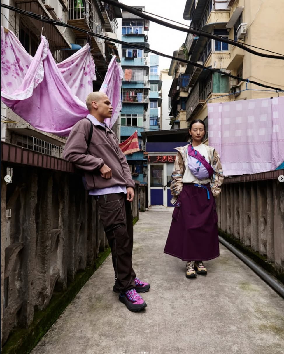 Tu as vu les collec ACG de ces derniĂšres annĂ©es (post Errolson) ? Parce que câest littĂ©ralement la mĂȘme chose : shooting, couleur, fit. Et les pompes avec la semelle et les sangles câest des jumelles des mountain fly