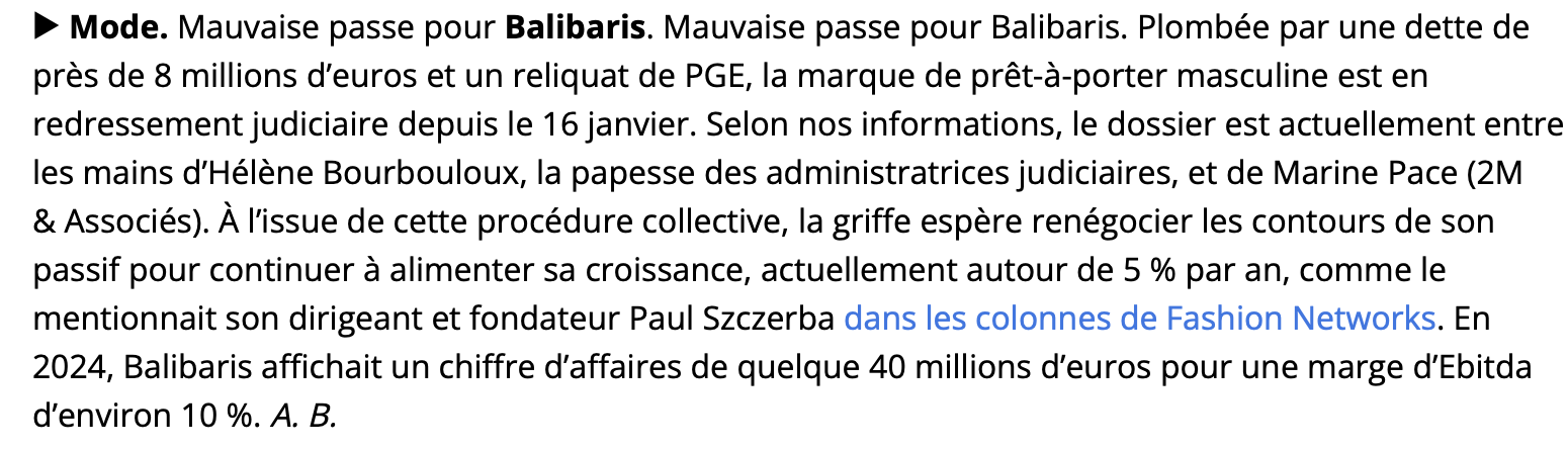 Oui Balibaris Ă des corners Ă Printemps, BHV et Galleries. Mais on a remarquĂ© Ă©galement quâen ce moment câest pas folichon dans le secteur. Et pour les autres boutiques physiques, de mĂȘme, câest quasi dĂ©sert.