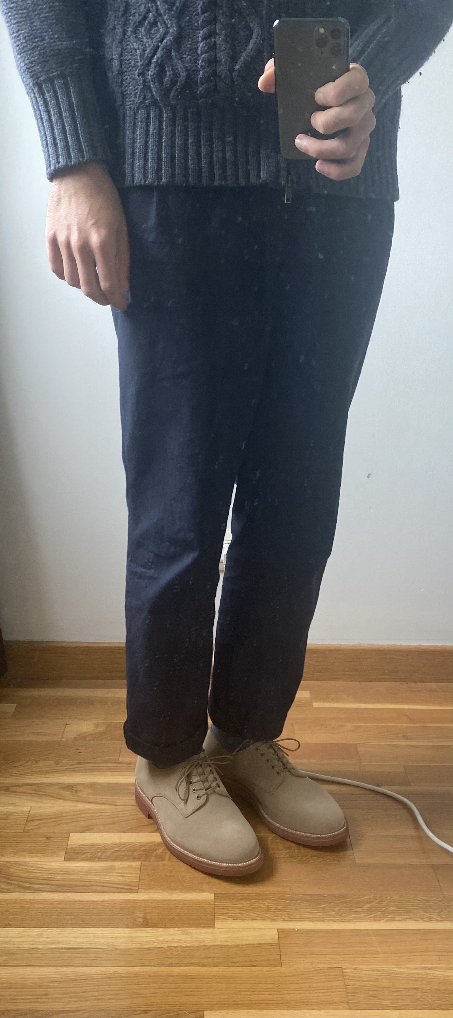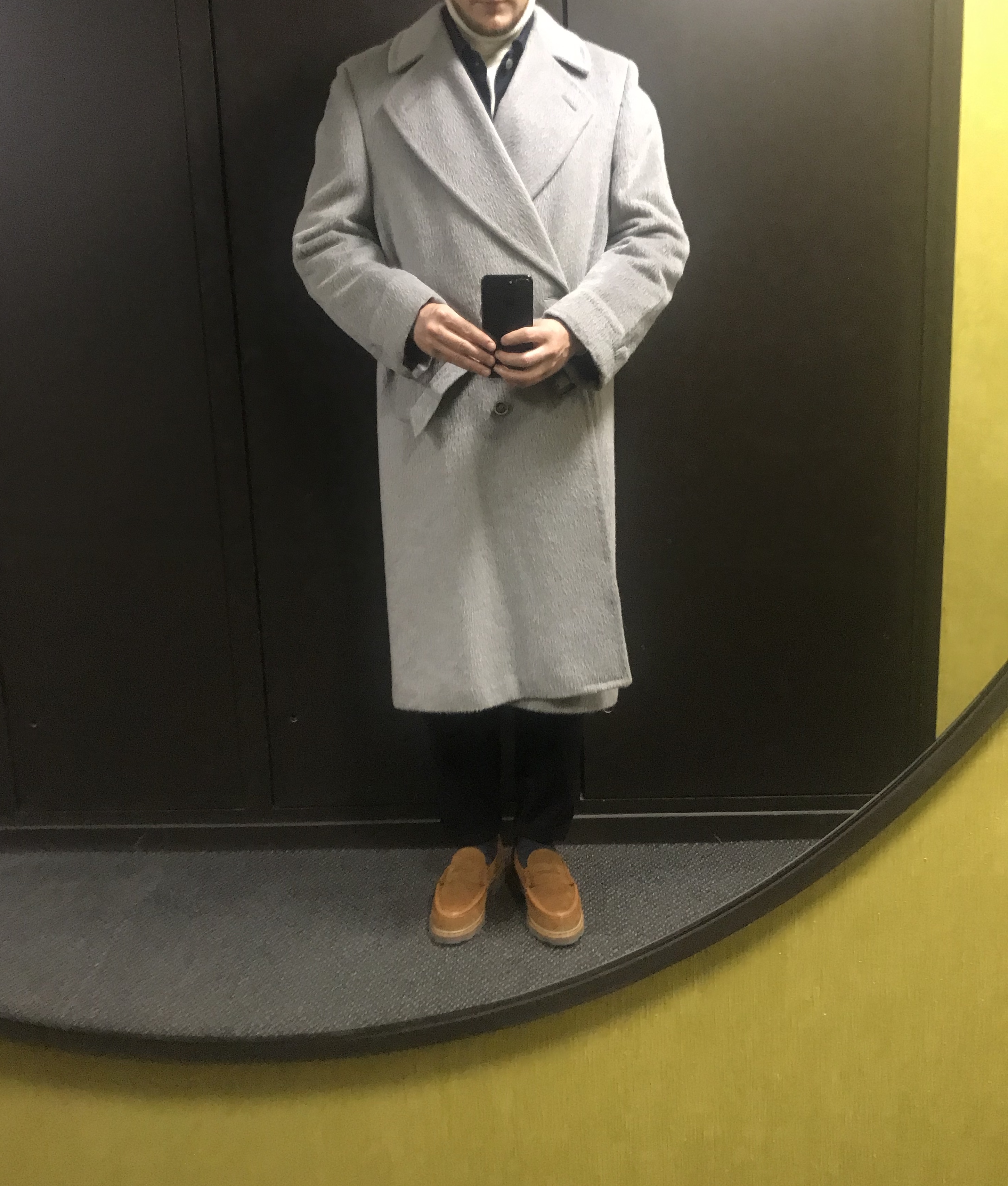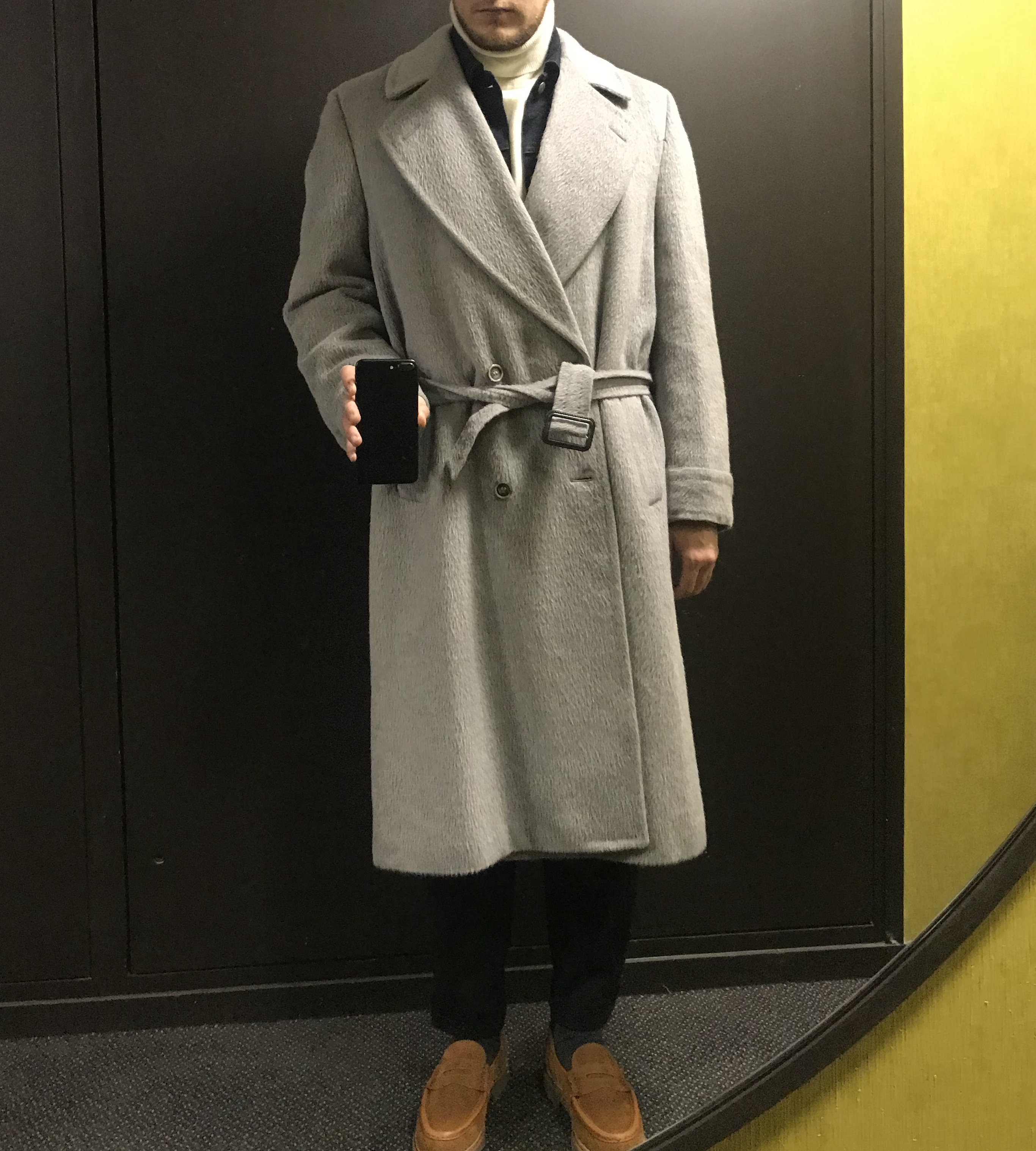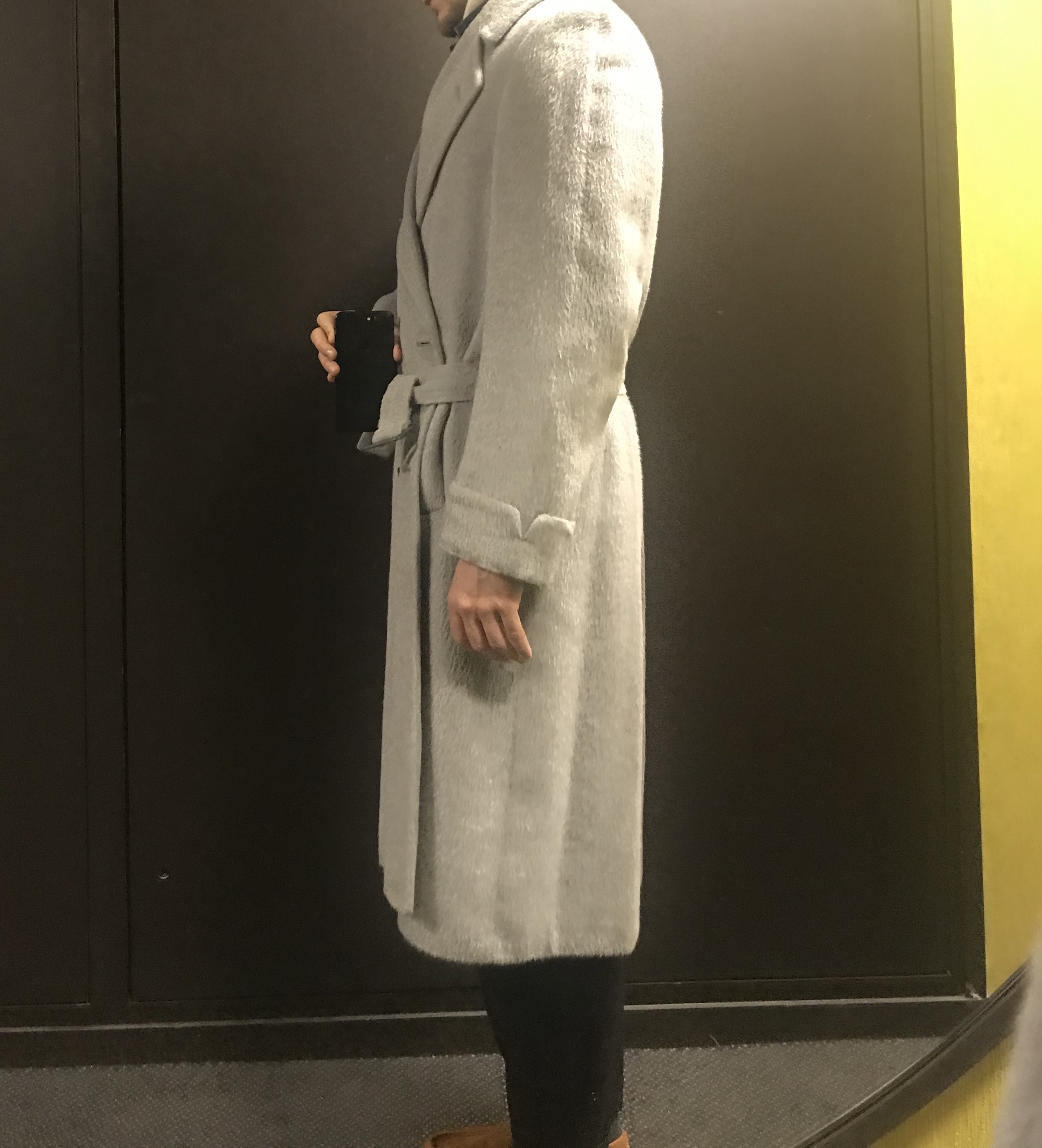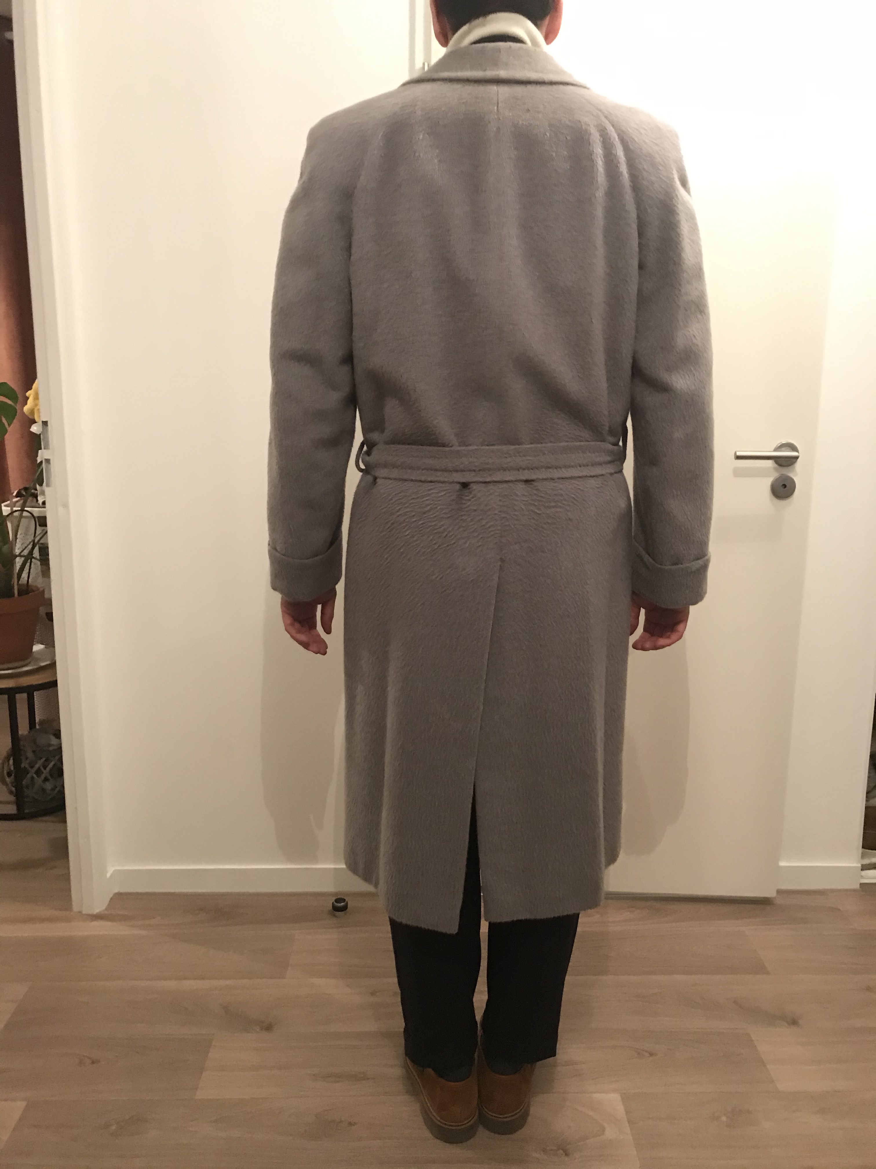 Je te conseille pas forcement de trop reprendre le corps, un manteau ceinturé ça doit avoir du volume pour que ça rende bien une fois la taille marquée par la ceinture. L’important c’est les épaules et dans ce cas la longueur. Les boutons étant assez bas, je pense qu’une retouche en longueur serais assez peu heureuse en terme d’équilibre (à moins que ce soit de très peu).