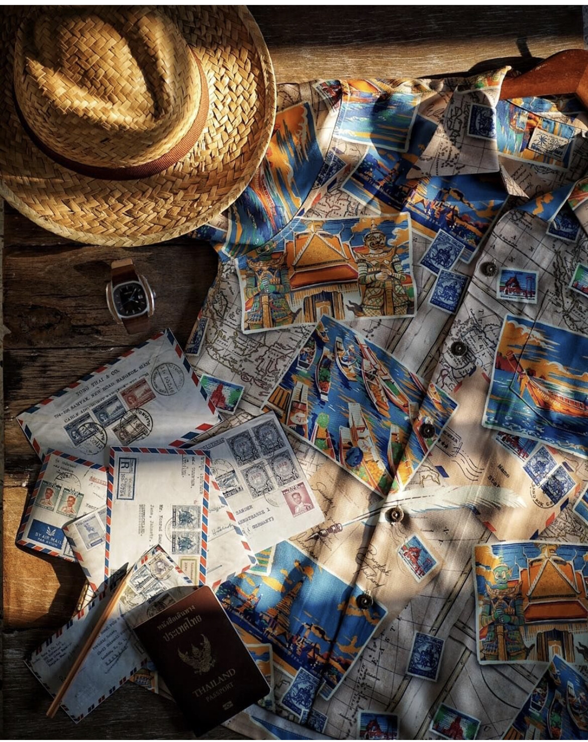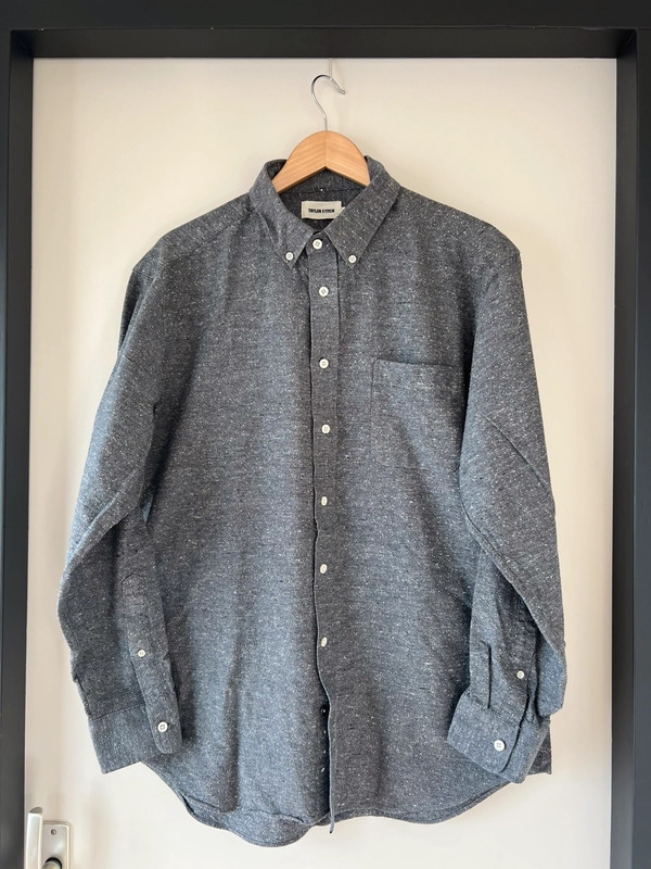 Une Taylor Stitch gris chinĂ© blanc/bleu qui devrait ĂȘtre ample comme il faut pour les beaux jours