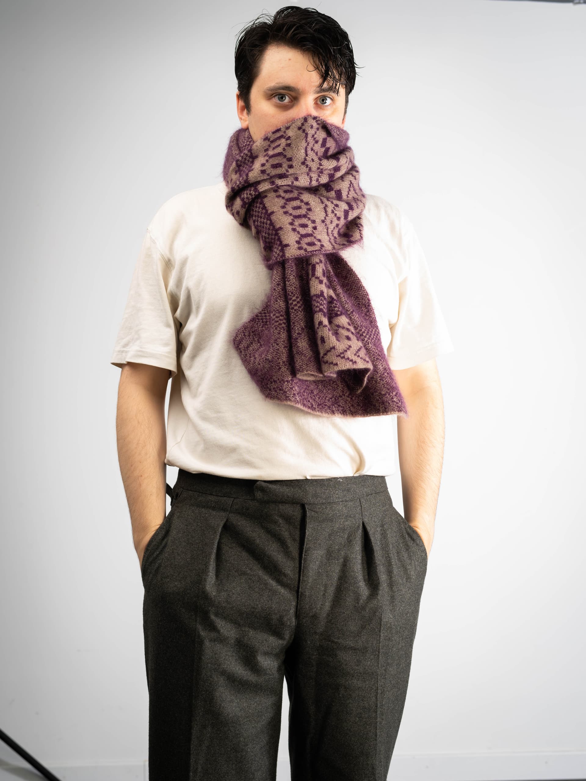 Mélange cachemire-mohair-soie reprenant la matière et le motif de mon plus beau pull MA, je suis un homme heureux ![]()