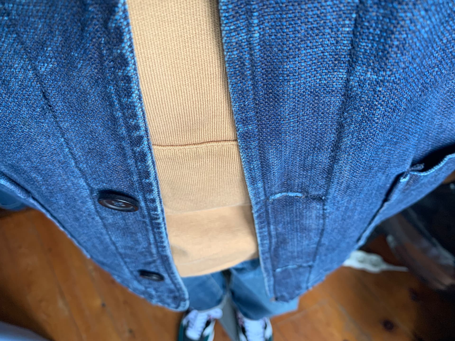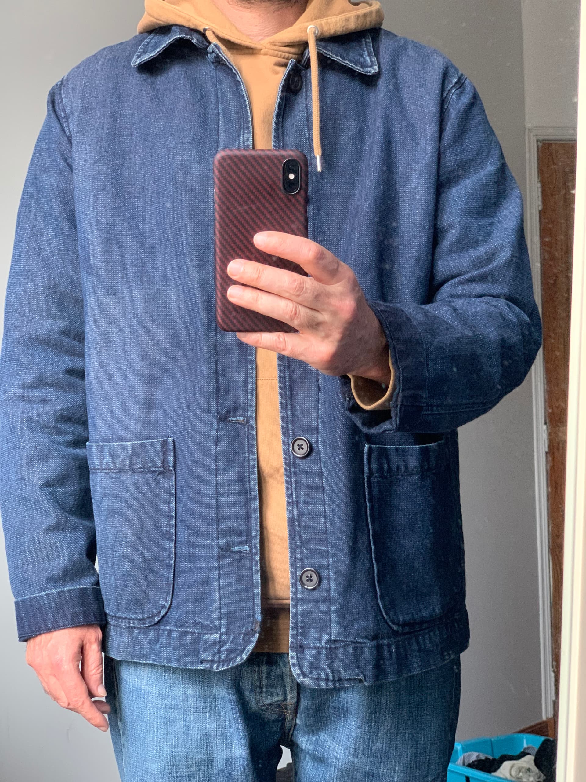 Hoodie Colorful Standard et la veste monopâ sashiko en taille L. Je lâavais en M mais elle Ă©tait un peu juste. LĂ câest exactement ce que je voulais