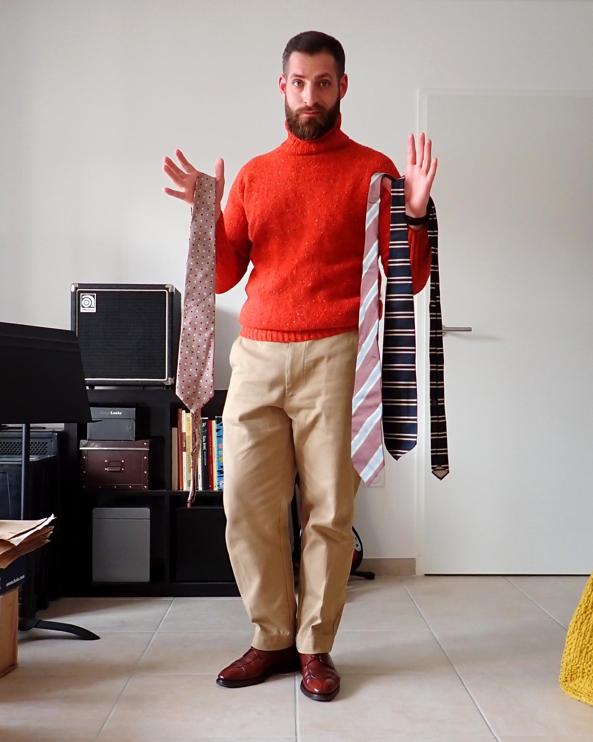 Un lot de trois cravates vendues par une Italienne fort aimable, dont cette trĂšs belle Drakeâs Ă gauche sur la photo.
