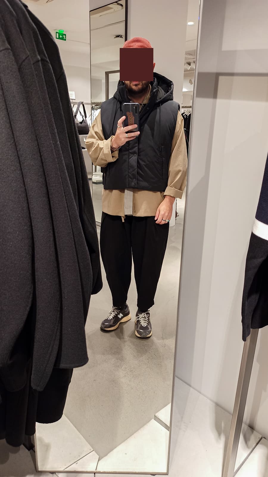 Et chez COS en noir/gris foncĂ©. Existe aussi en Olive (sympa mais jâavais pas envi) et en bleu. Jâai pris du M/L en taille.