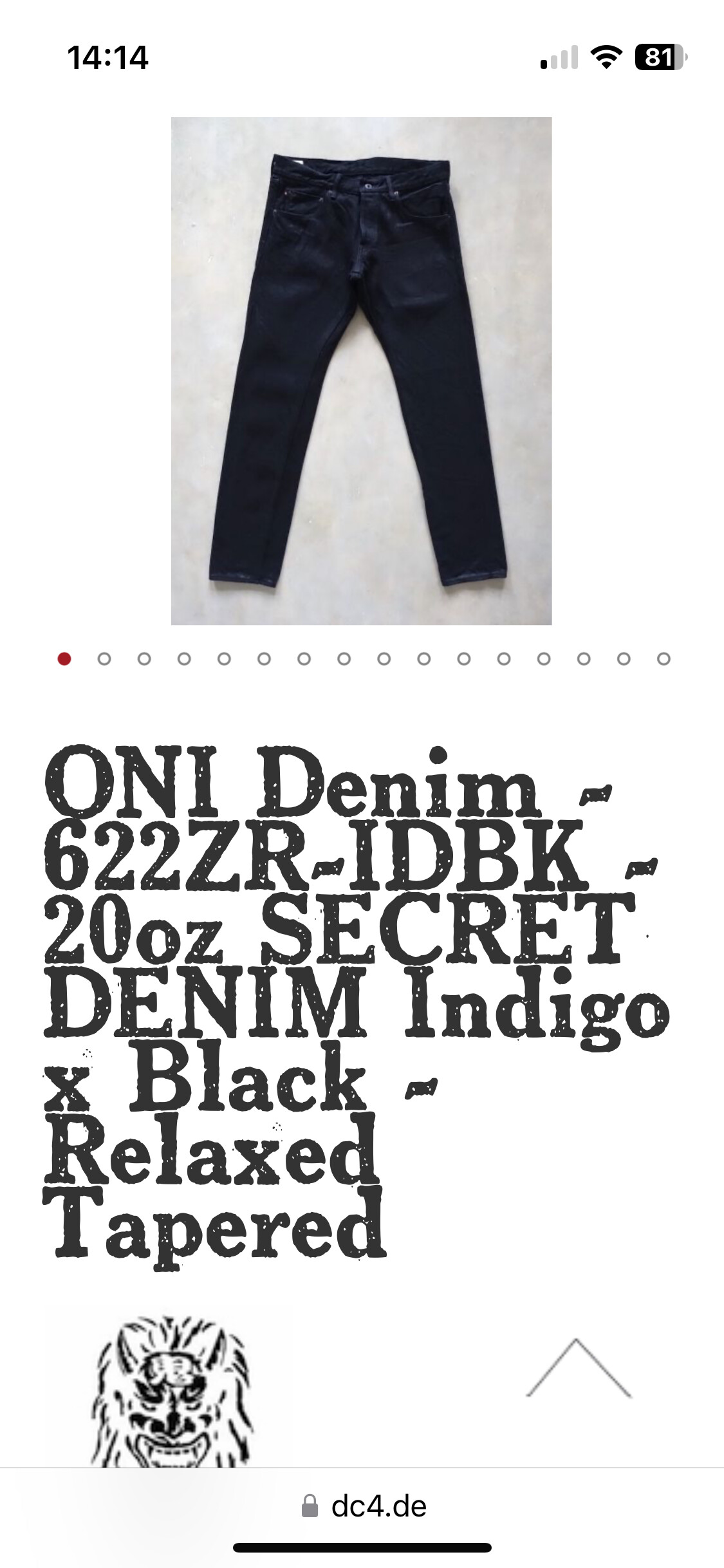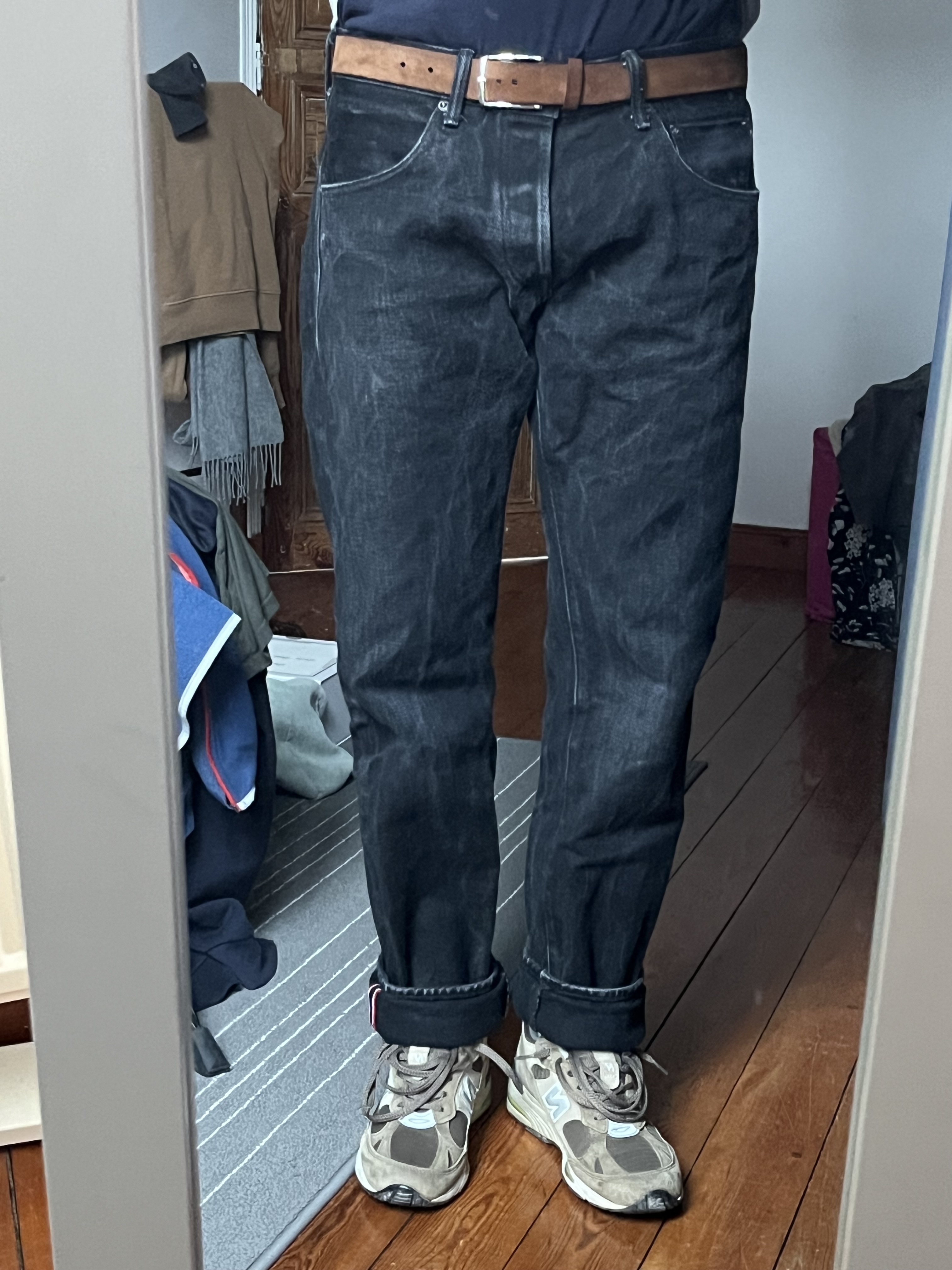 Un Oni denim trouvĂ© sur le bon coin (79âŹ). La toile est ouf et jâaime bien la coupe ! (Taille 34 et je mets du 32 chez edwin).