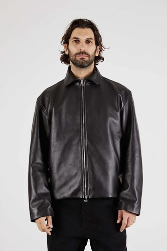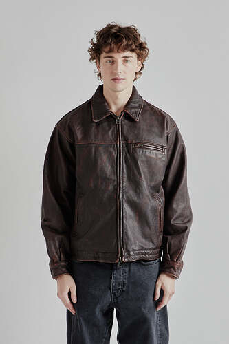 - Edwin : Jâadore la marque et jâaime bien lâapproche toute simple de celle si. Cuir de vachette plutĂŽt fin, ca avait lâair simple Ă porter et passe-partout. Par contre comme souvent chez la marque, un rendu oversize, et sur celle lĂ particuliĂšrement, inutilement longue au buste Ă mes yeux. TestĂ© en magasin, mĂȘme avec un downsize de 2 tailles jâavais encore de lâaisance.