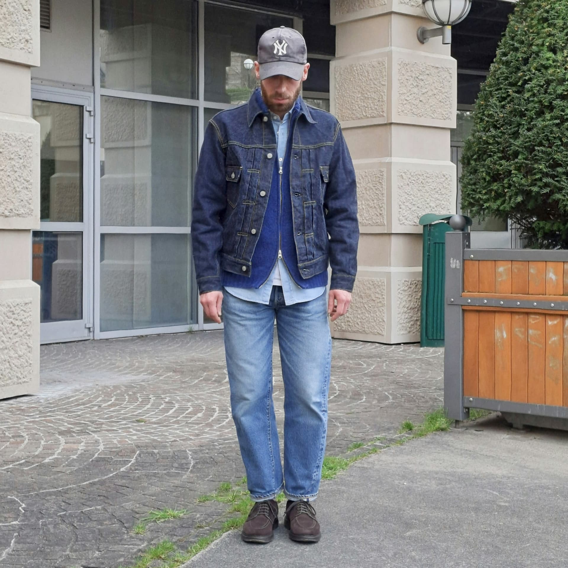 Jâai un gilet en laine dans cette couleur, jâaime bien la couleur, mais je trouve pas si facile a associer dans autre chose quâune association de bleu. Avec un fut beige, je trouve pas ca foufou, ni mĂȘme avec un fut gris foncĂ©/noir, avec un fut olive ca passe mais bof. Bref, a part un jean blanc / bleach / brut, je nâai pas vraiment trouvĂ© dâassociation qui me plaise vraiment niveau couleur. MĂȘme si ce nâest pas un gros soucis puisque jâaime bien les combos autour du bleu.
