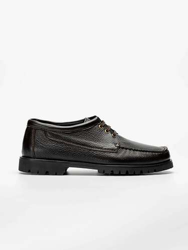 Je suis moins client. Le design on dirait des boat shoes mais sans les lacets sur le cĂŽtĂ©, on sâĂ©loigne pas mal des derbies quâon Ă©voquait au dessus style Golf ou Alev