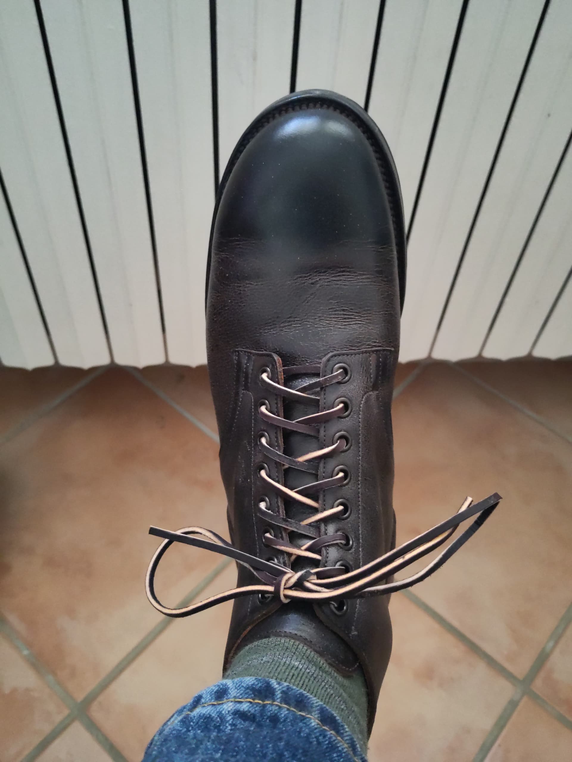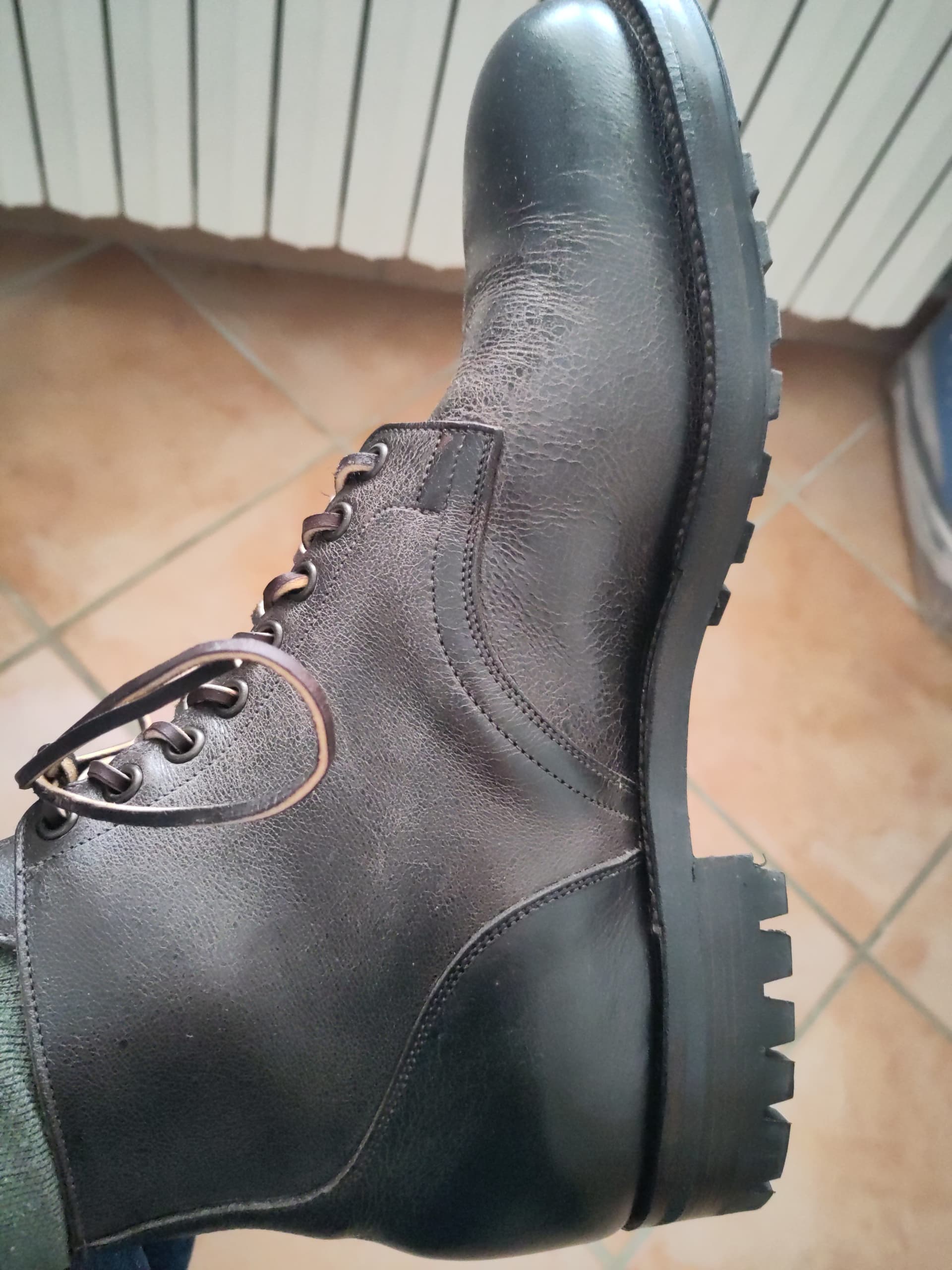 Des service boots 1035 de chez Viberg en kudu. Super content, câest de la largeur E ce qui mâa Ă©vitĂ© de prendre 1/2 pointure au dessus comme je dois faire la plupart du temps, cuir trĂšs quali et avec du caractĂšre, la forme est ronde juste ce quâil faut.