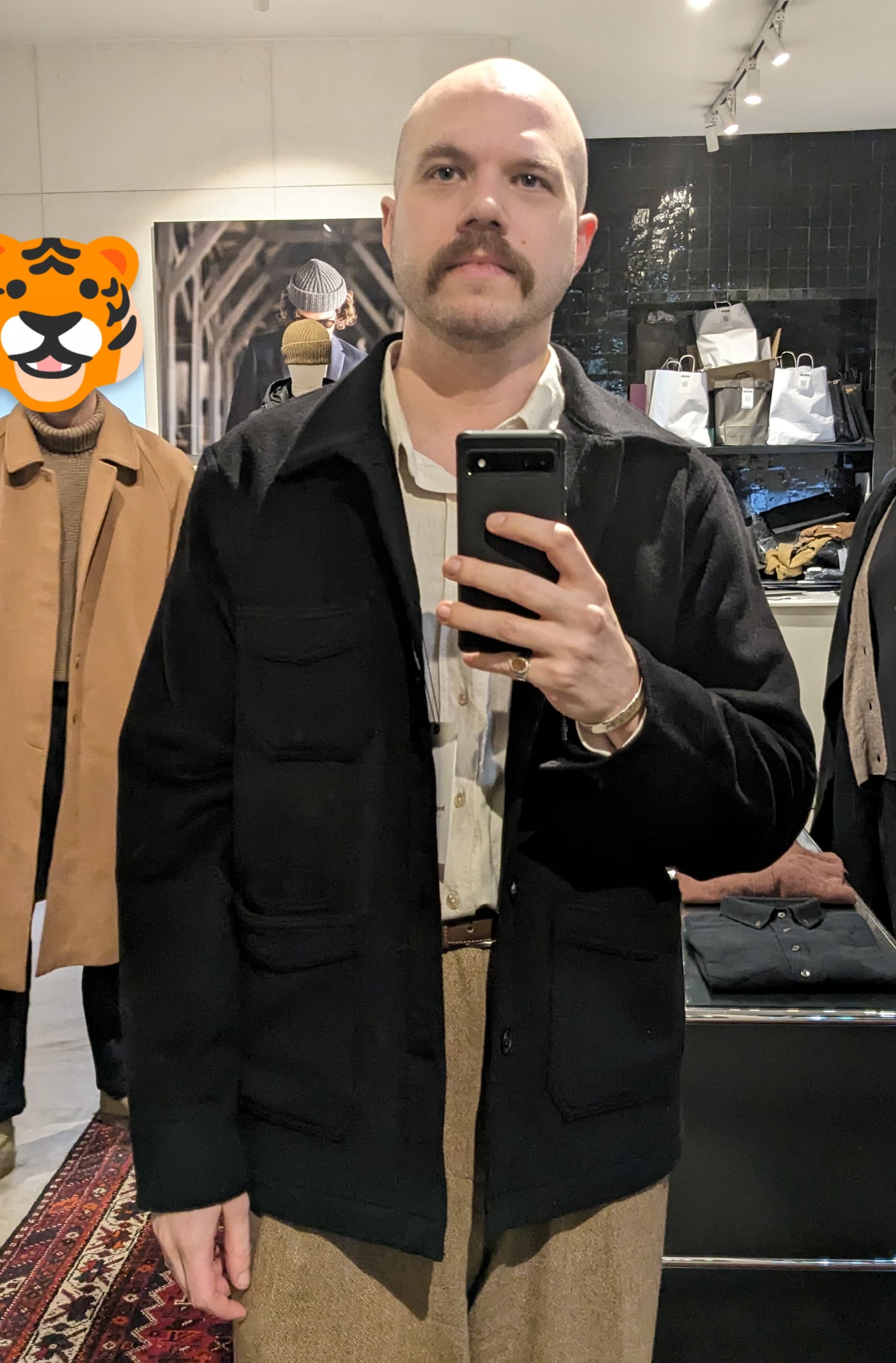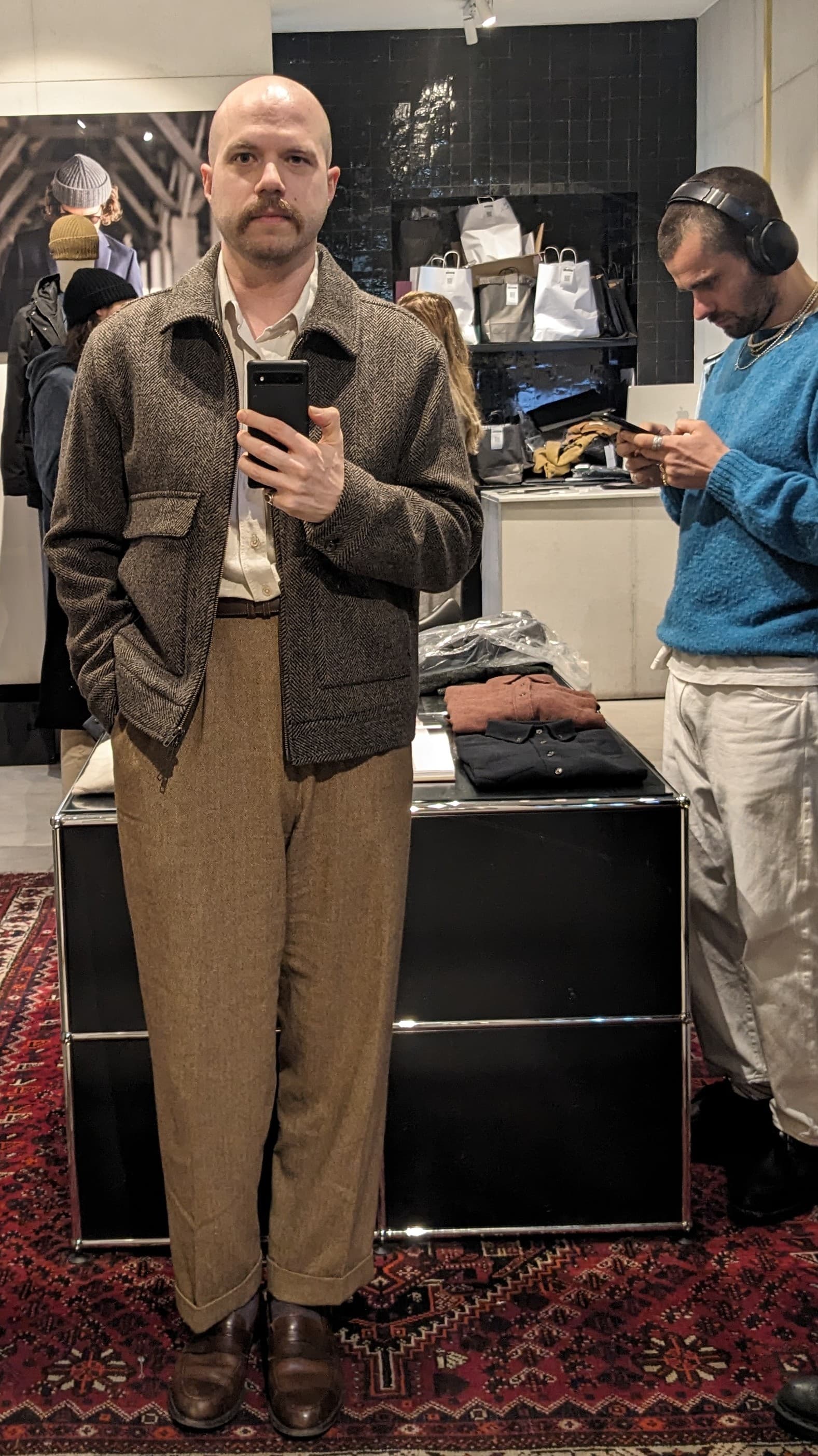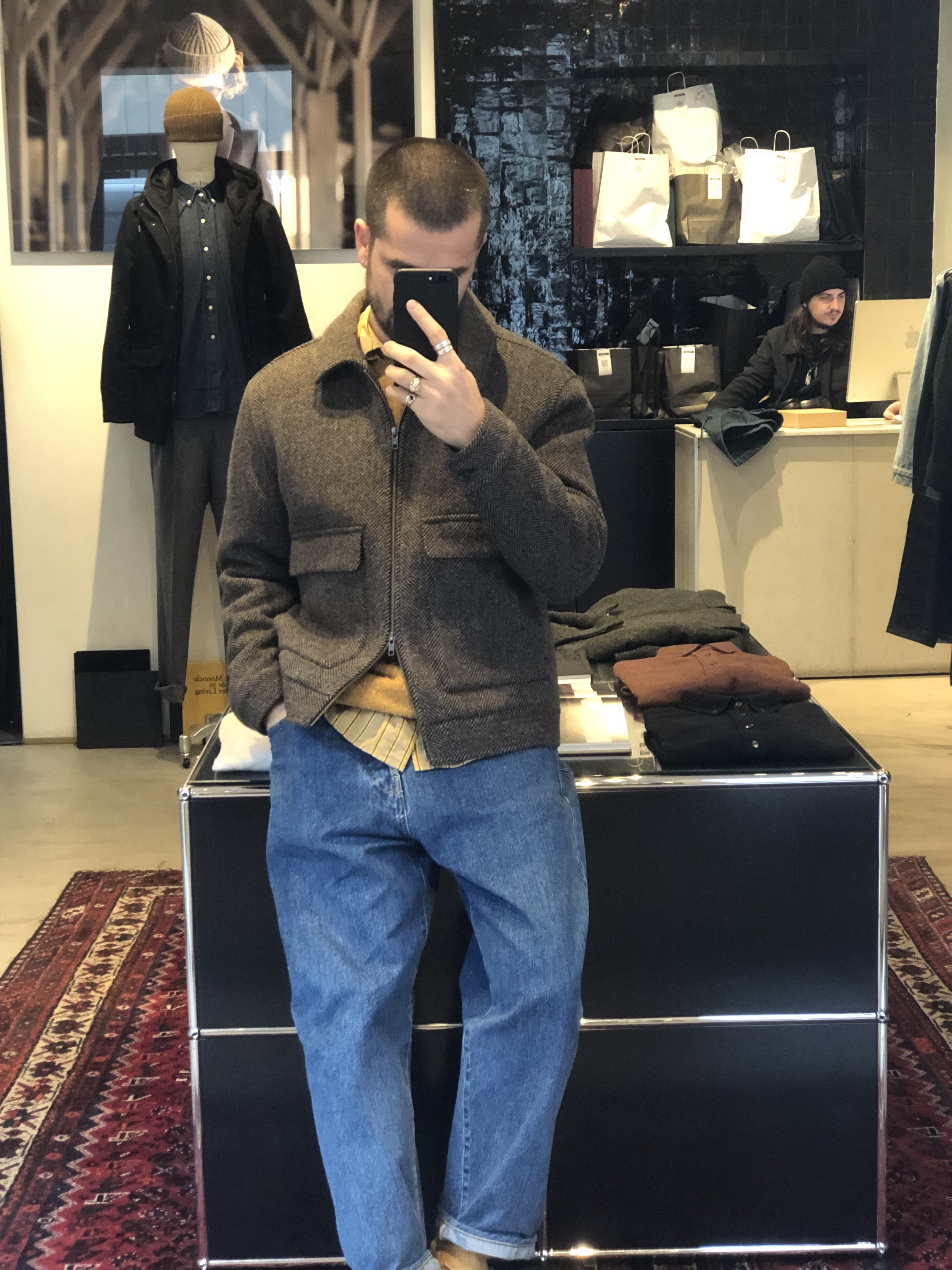 La veste de métier en mélange cachemire est pas mal du tout, j’ai juste un soucis personnel avec le col que je trouve un peu trop bas ou qui manque d’un pied de col.