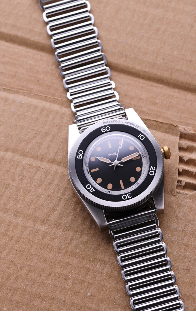 The bezels don’t rotate (hence marketing the Lima Meca Revolt “diver style”) but who cares it looks ridiculously cool.