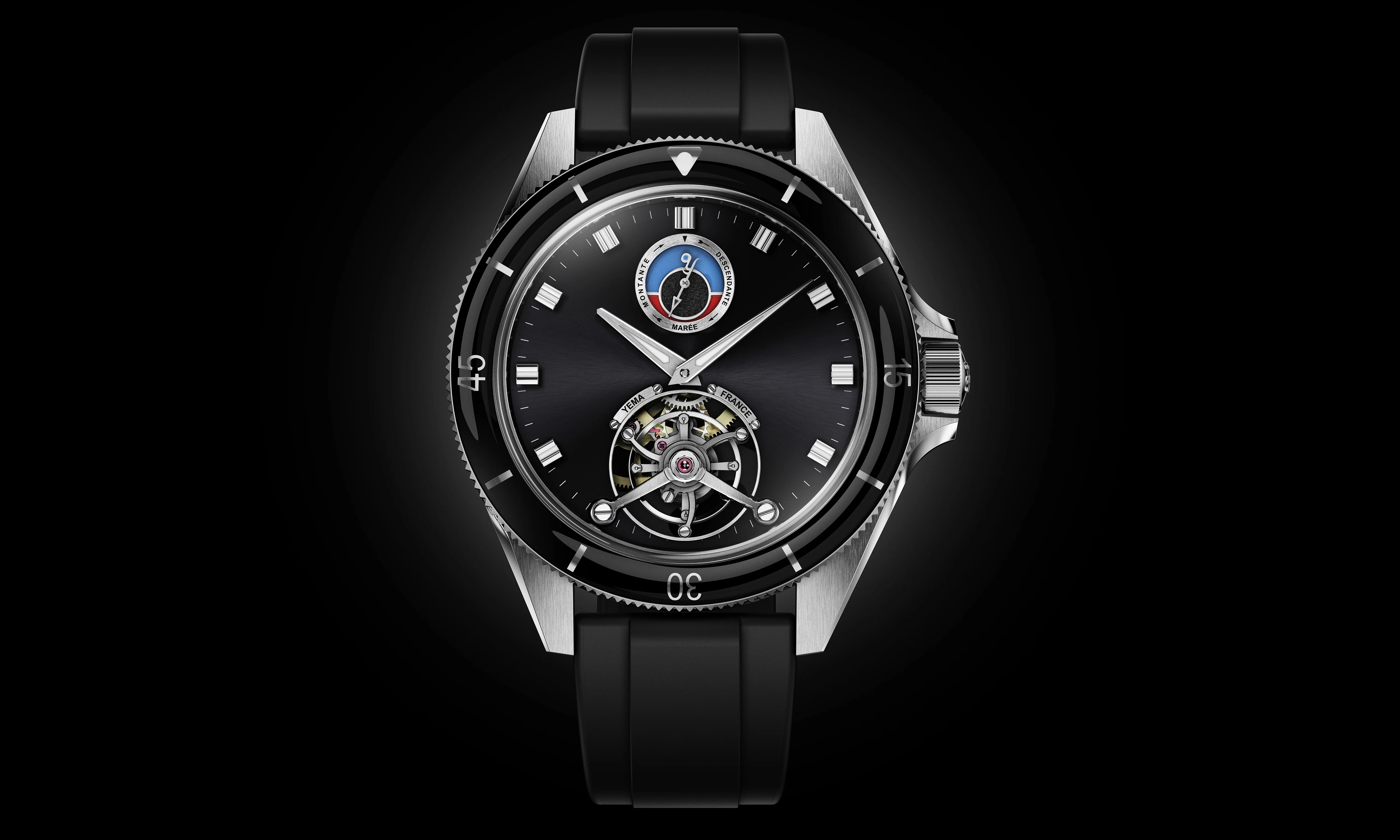 Par contre bémol sur la cadran : je trouve les index trop courts par rapport à l’aiguille des heures, ils font un peu patauds. Pas certain de l’équilibre entre la cage du tourbillon et l’indicateur de marée non plus. Il me donne un peu l’impression d’être à la fois vide et chargé.
