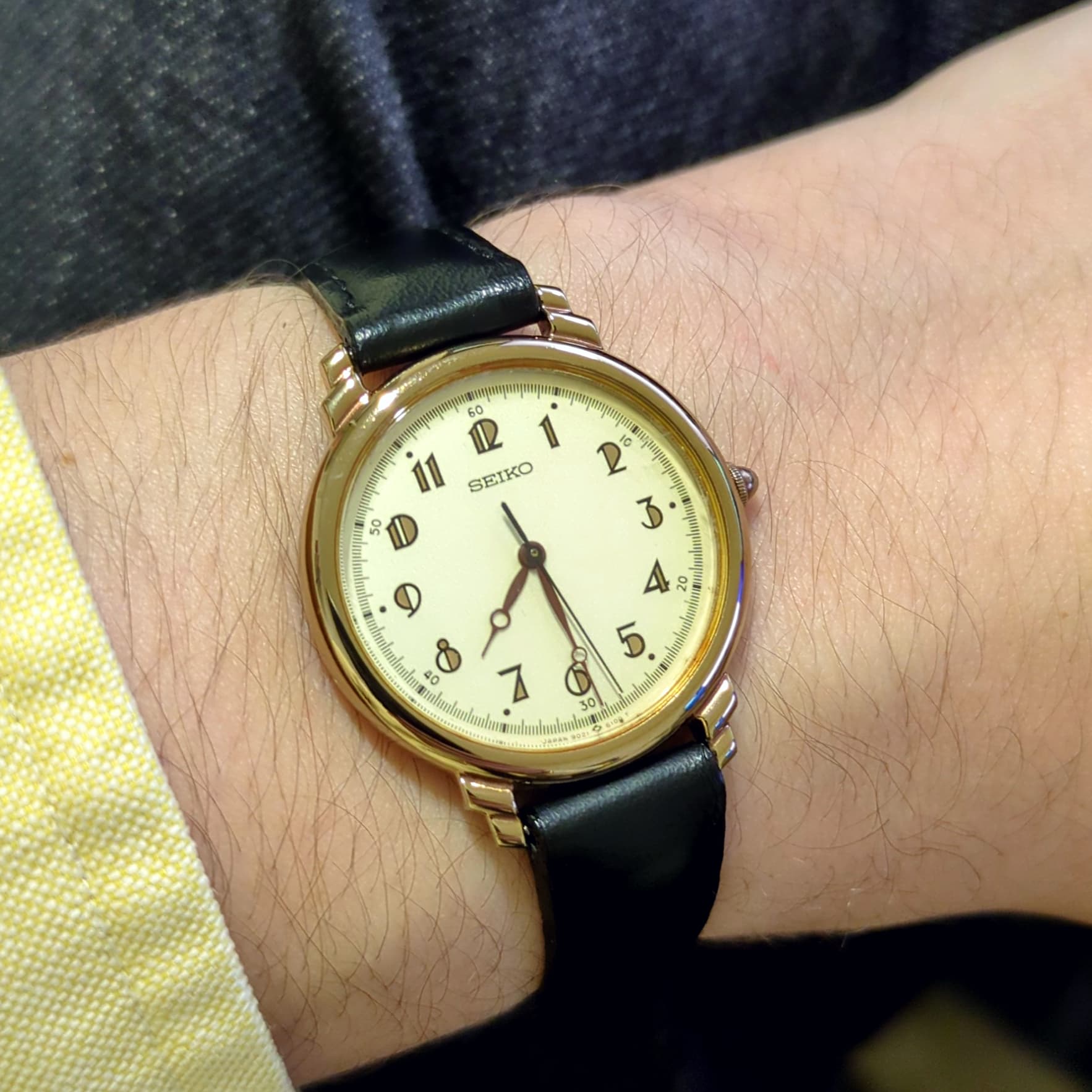 Première fois que je poste ici parce que je viens de recevoir cette (toute) petite seiko vintage qui fait très plaisir, elle est peut-être vraiment petite pour mon poignet mais je suis amoureux du cadran et des chiffres art deco