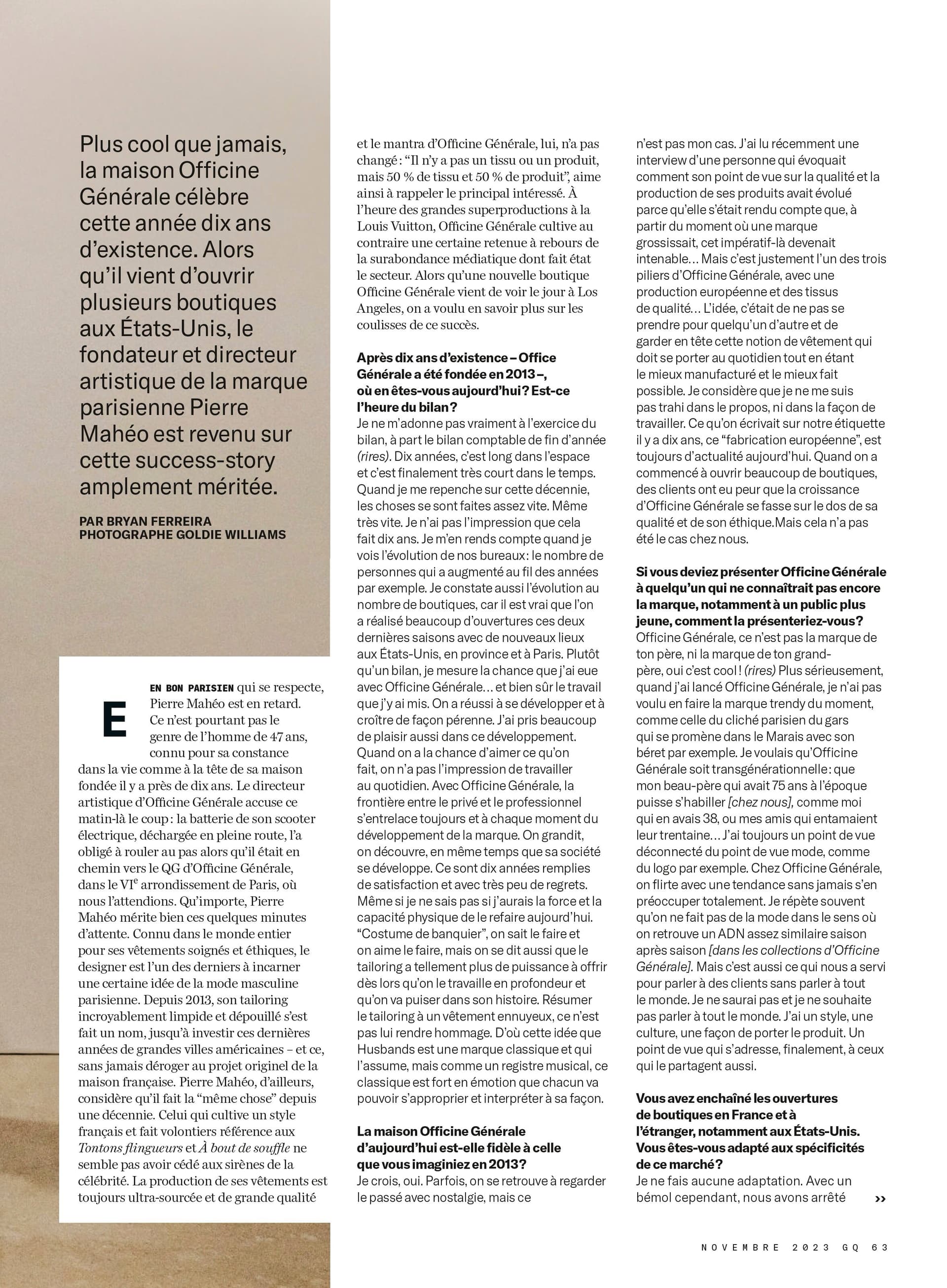 Interview de Pierre Mahéo dans GQ de ce mois.