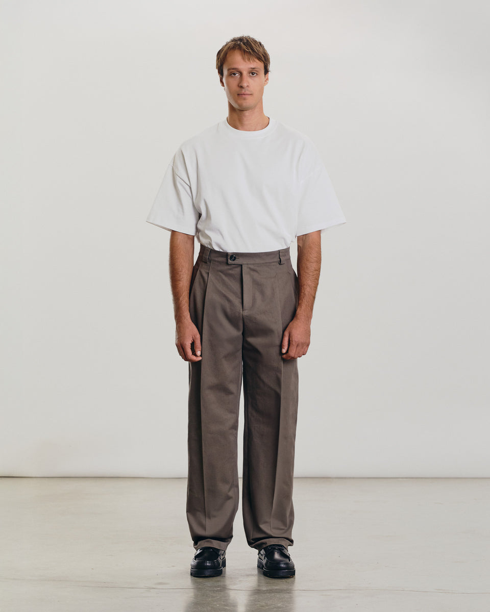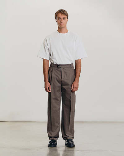Antonello is a wide-legged casual trouser, inspired by classic chinos from the 80s and 90s. Cut from winter weight cotton twill with a peachy finish the Antonello trouser features a high rise, double pleats, and a wide leg. Designed to be a truly...