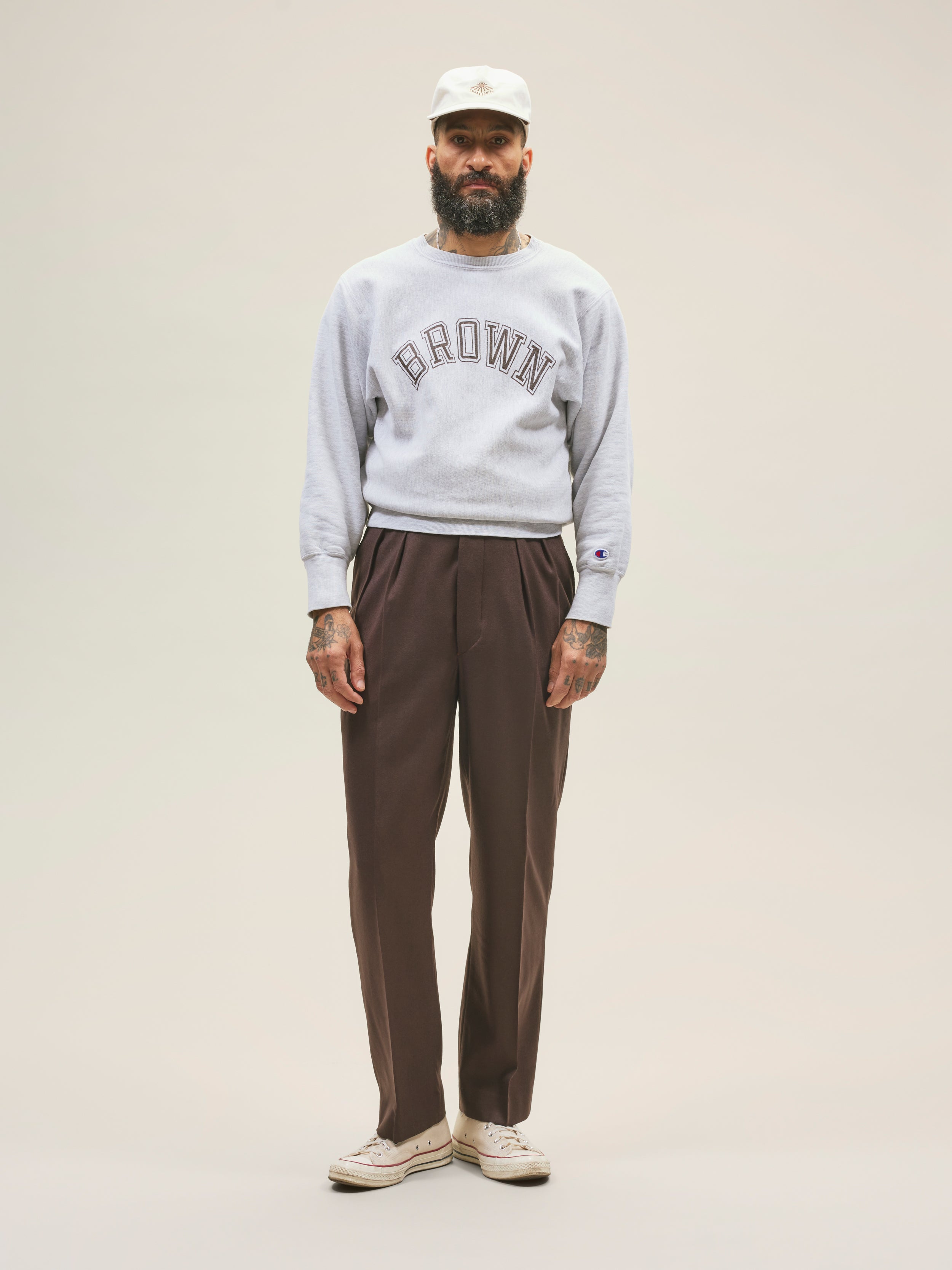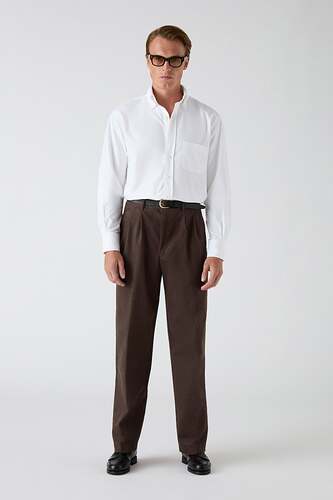 Our new relaxed trouser is cut with a high rise designed to be worn on the waist with single reverse pleats and a straighter fit from knee down for a more casual look.