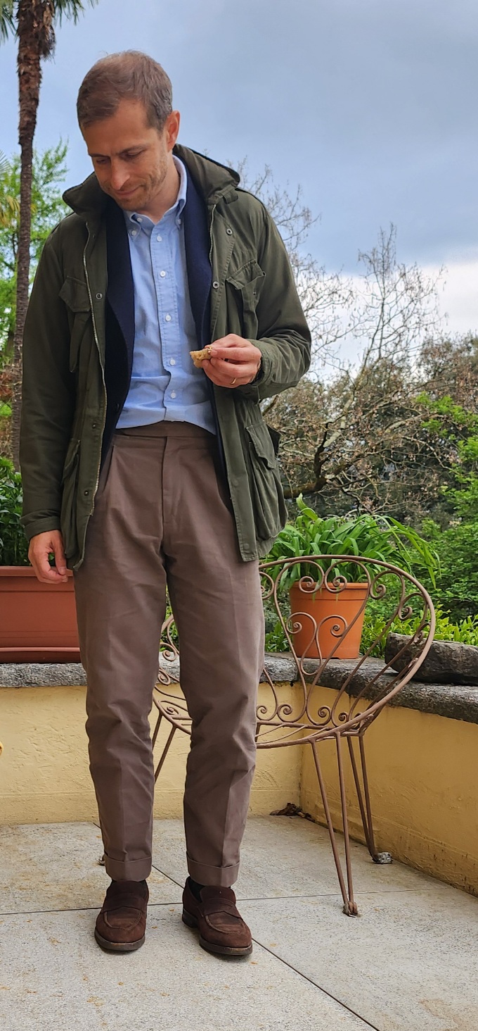 Un dĂ©tail mâa Ă©tonnĂ© : jâai essayĂ© la version navy Ă 175⏠et la version khaki Ă 260âŹ. Les deux en twill de coton, mĂȘme coupe mĂȘme modĂšle. Je prĂ©fĂ©rais nettement le khaki en termes de couleur.