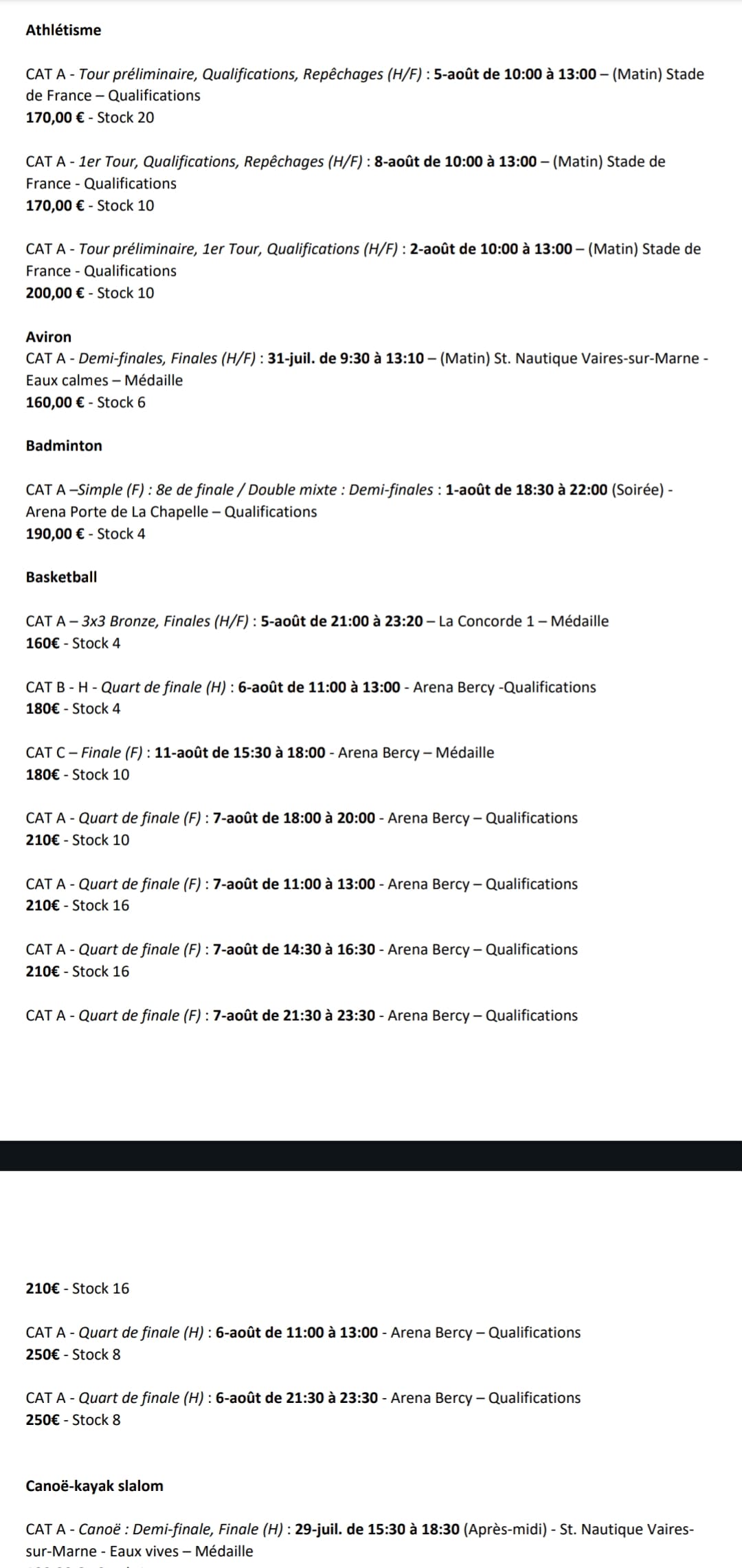 Autre contre-exemple, mon pĂšre a obtenu plusieurs fois des places en se pointant sur le site aux crĂ©neaux indiquĂ©s : dernier billet pris Pentathlon moderne 65âŹ/billet, prix bradĂ© parce que les mĂȘmes places en mars ont Ă©tĂ© proposĂ©es plus chĂšres