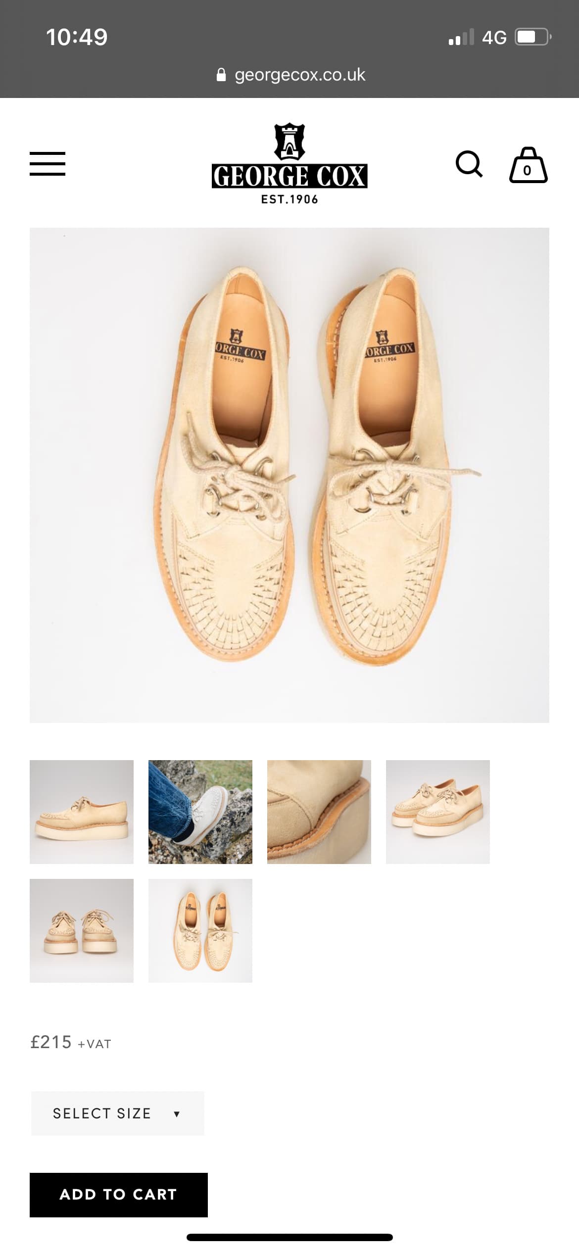 Les modèles de chez George Cox je les trouve très cool perso. Ce type de creeper c’est bien entendu pas facile à porter si tu ne sais pas assumer mais ça reste un super modèle. Sincèrement y’a un gros potentiel !