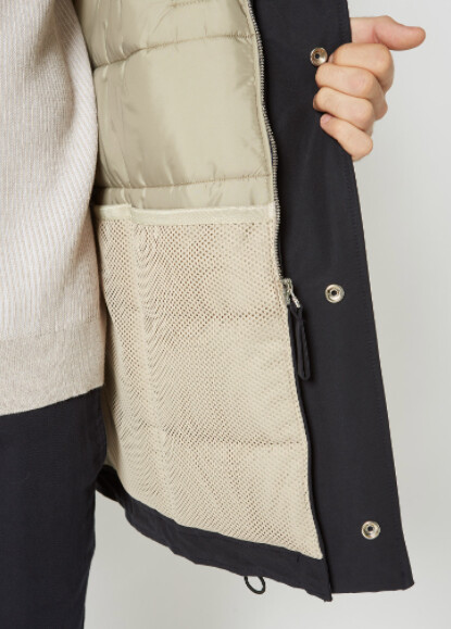 Bon déjà ils ont ajouté une poche poitrine c’est pas mal (moi j’ai juste les poches mains sur la mienne). Au minimum j’aimerai 2 poches mains à zip, une poche poitrine zippé, et une poche intérieure assez grande pour y mettre un livre de poche ou un objet de ce volume. J’aime bien les poches filet dans cet esprit, qui collent bien à l’esprit veste technique en plus je trouve. Genre ça :