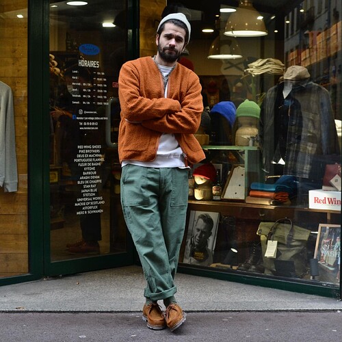 une proche de ta combinaison (qui est déjo très bien d’ailleurs en asso, je trouve juste que c’est plus cool avec une paore noir ou marron au pied)