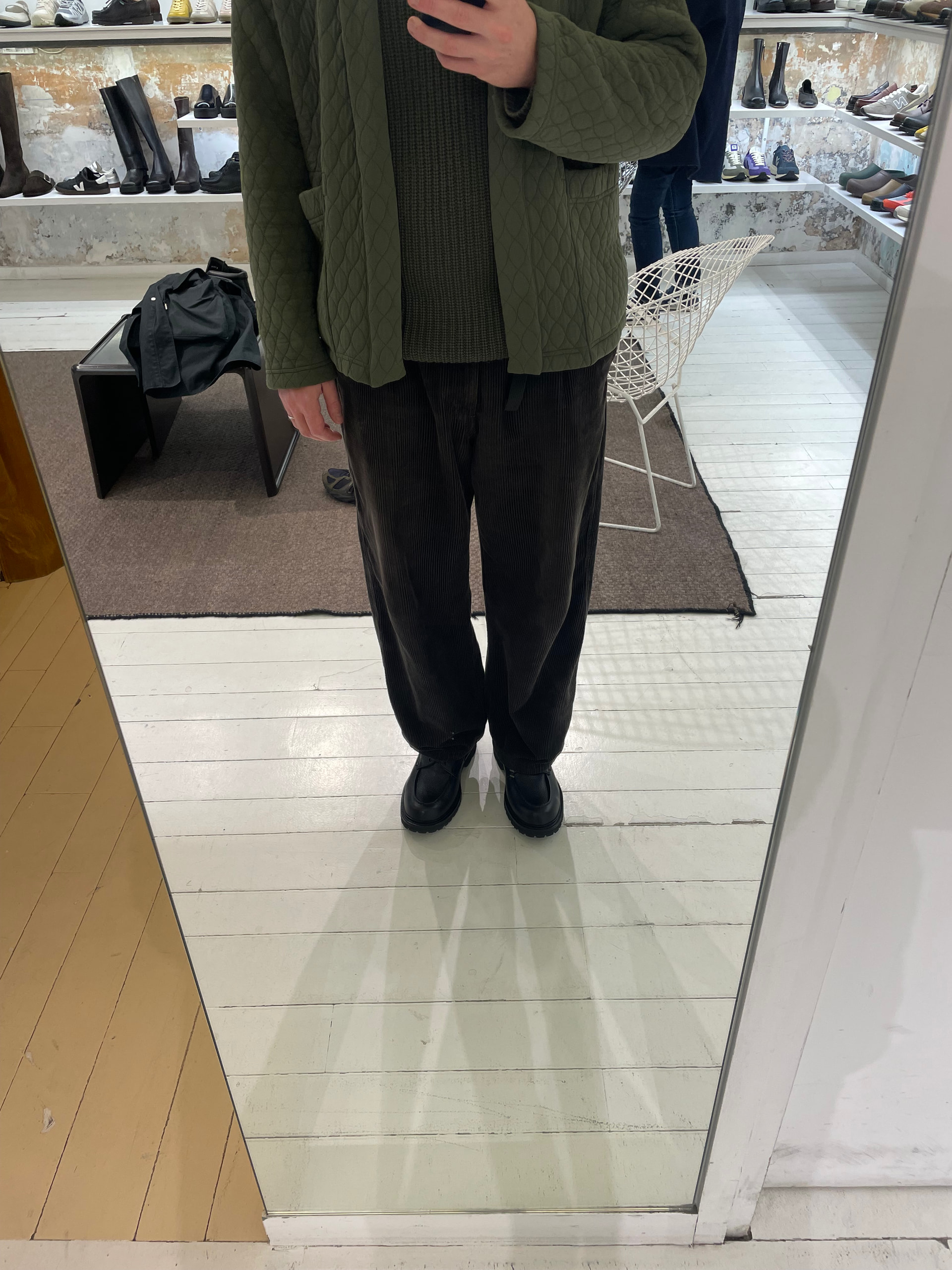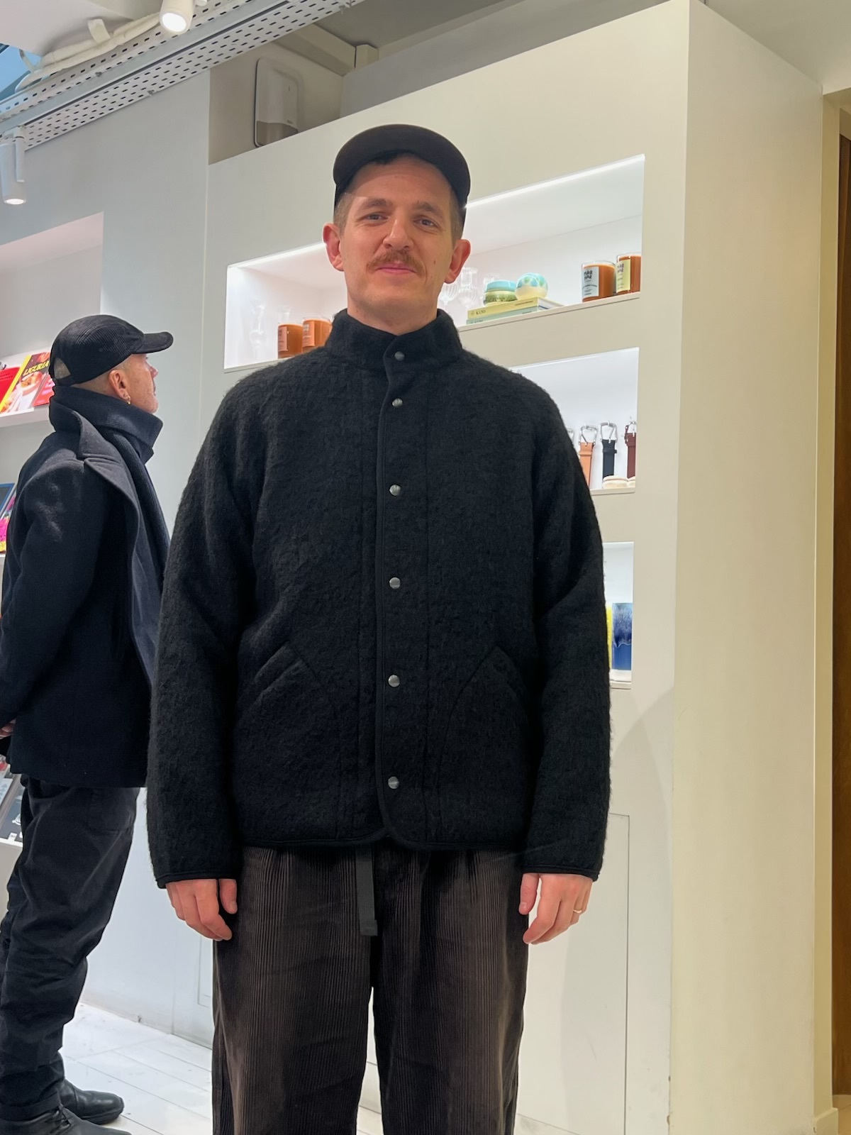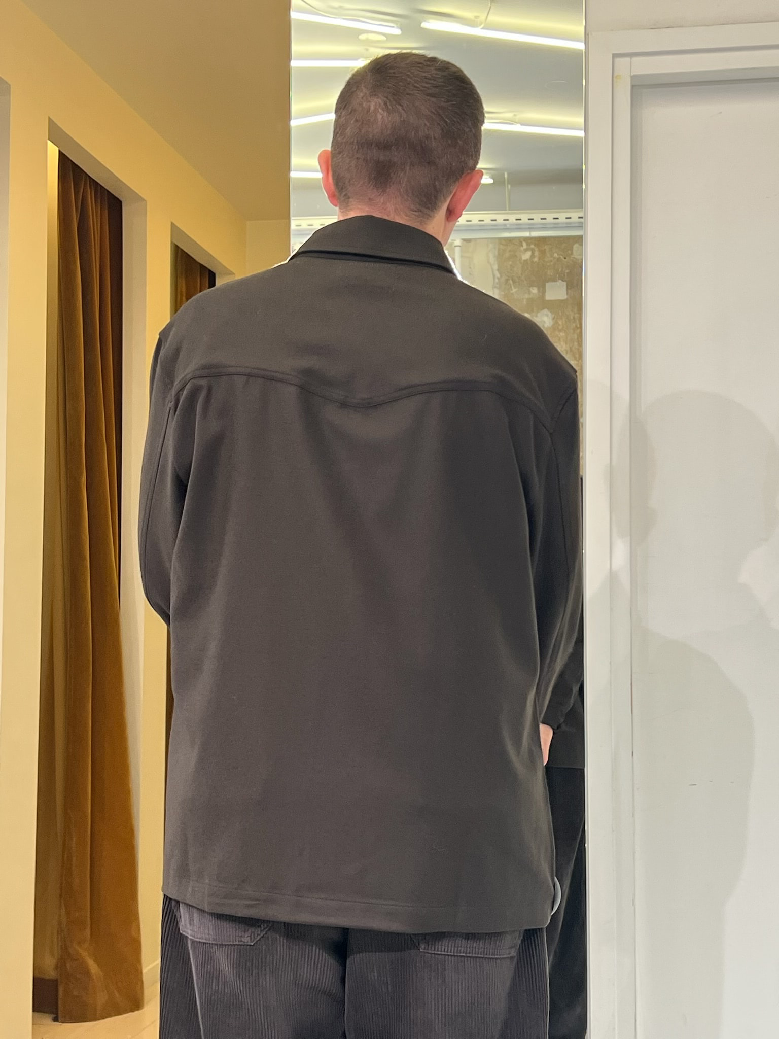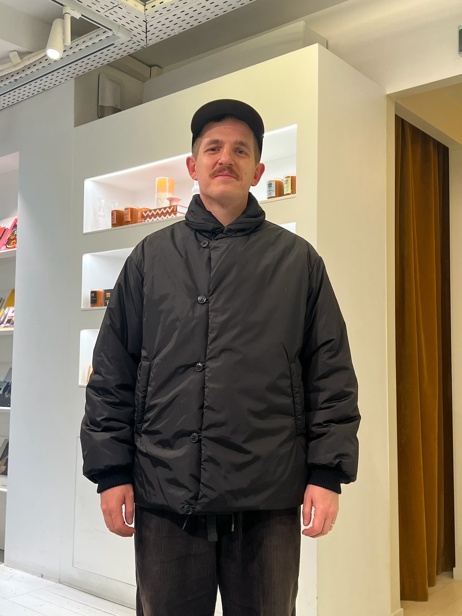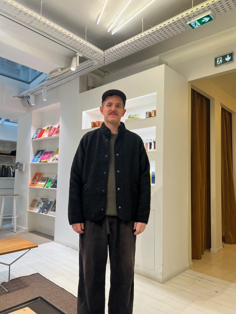 Pas super convaincu. Je le porte en S ici car le M était vraiment trop oversize. Les manches sont encore trop longues en S et pourtant je suis étriqué aux épaules. J’ai plus la photo du manteau fermé mais ça n’allait pas.