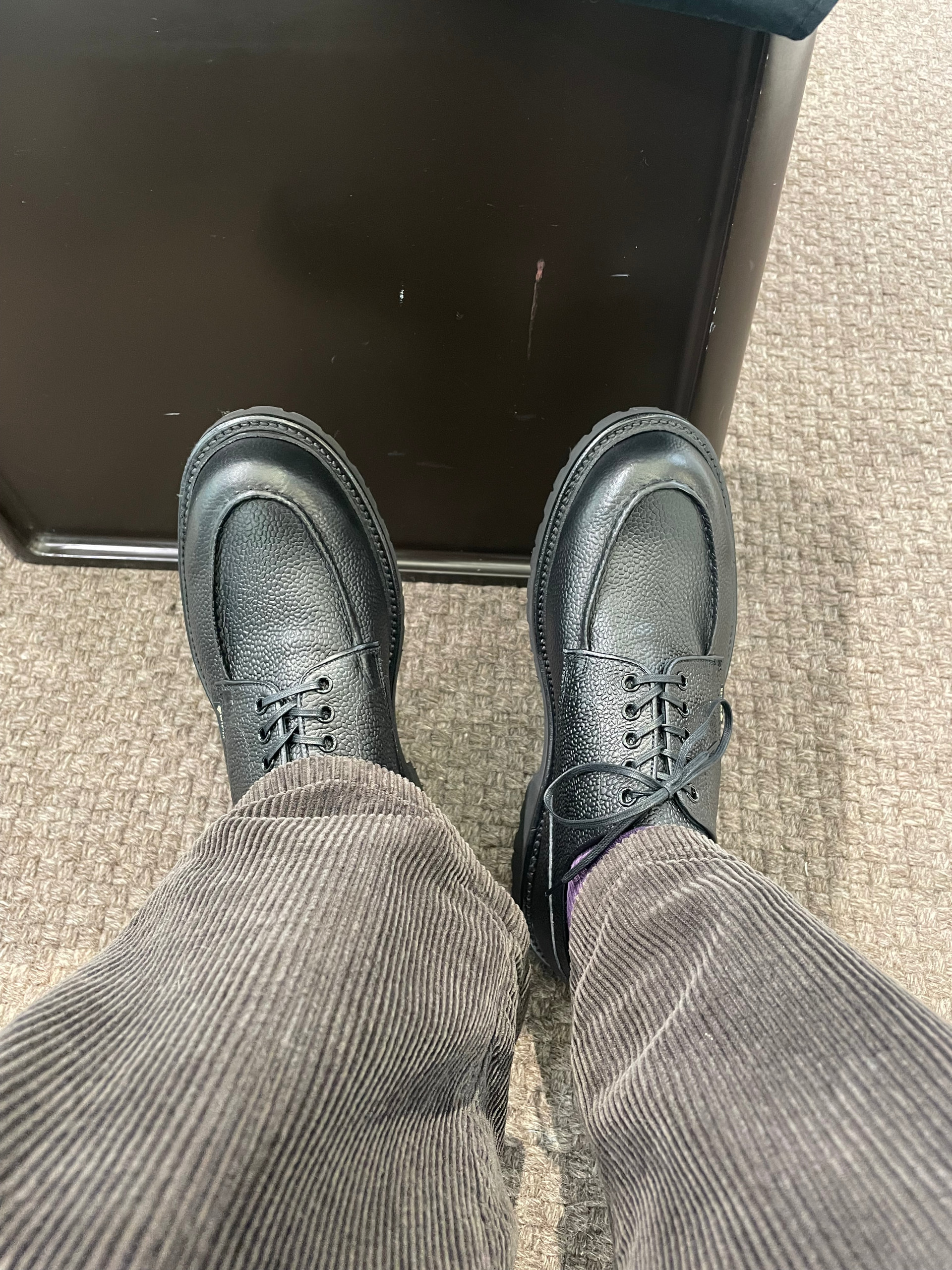 Des Régal, modèle de derby classique de la marque avec une membrane en gore tex. Aucune idée de la tenue dans le temps notamment respirabilité du cuir mais j’ai trouvé le modèle plutôt canon et bien pricé (390 €).