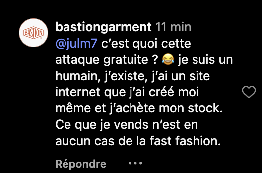 y a un mec qui a cité sous une de mes vidéos, le shop / marques (je sais pas trop) Bastion en disant qu’il faisait comme les revendeurs de shein / temu sur vinted: