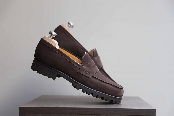 Jâai des malfroids aussi en semelle commando mais derbies grainĂ©e, câest cool jâaime bien mais ça donne tout de suite un cĂŽtĂ© imposant, donc mĂȘme niveau esthĂ©tique je suis pas certains du rendu sur des loafers, câest plutĂŽt des chaussures qui font « lĂ©gĂšres » donc jâai du mal avec lâidĂ©e de leur ajouter ça. AprĂšs jâai pas eu lâoccasion de les voir en magasin donc Ă voir
