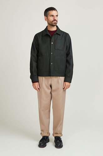 S.E.H Kelly a aussi un modĂšle correspondant ( https://www.sehkelly.com/shop/jackets/work-jacket/work-jacket-in-cotton-stay-wax-in-olive-drab/ ), mais pas dispo en laine actuellement. Tu peux demander directement Ă Paul si une version en laine est prĂ©vue dâici la fin de lâannĂ©e.