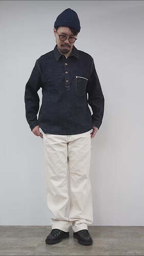 Je pense Ă cette piĂšce de chez Arashi : Arashi Denim - Pull-over Shirt M35 10.5 Oz Denim - One Wash â Arashi Denim Shop