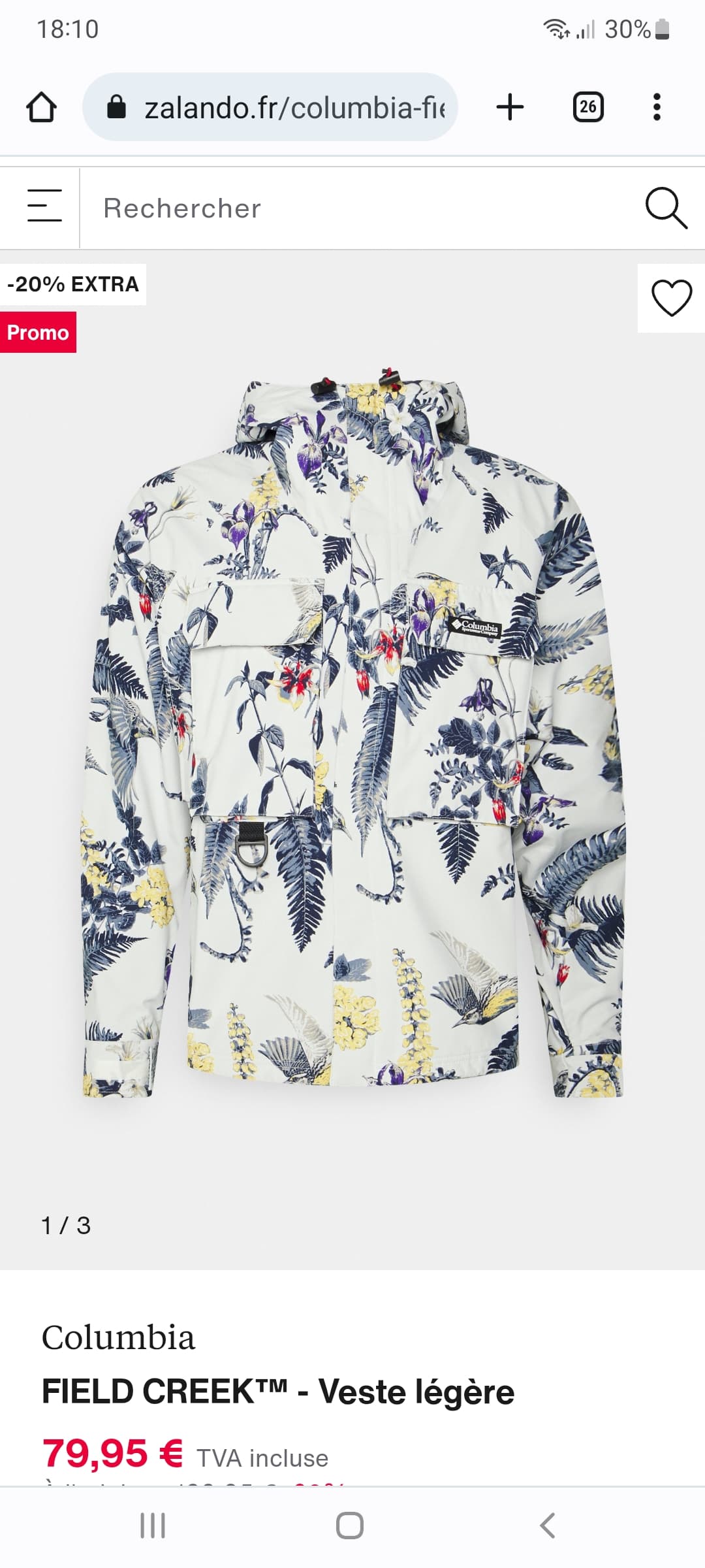 Chez Zalando, la veste est soldée a 80⏠et 20% supplementaires avec le code BRONZAGE, ce qui la descend a 64⏠(hors port). Reste toutes les tailles.