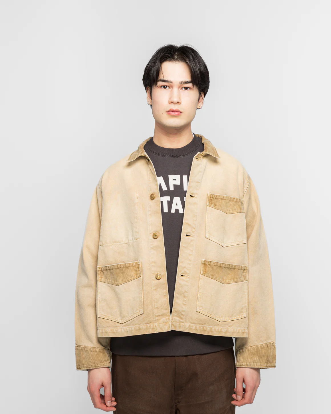 Ici le mannequin fait 1m87, ce qui est loin dâĂȘtre petit et porte le modĂšle en M. Je ne la trouve pas particuliĂšrement courte pour ce style de veste, ce qui mâa lâair dâĂȘtre lâeffet recherchĂ©. Pour le coup oui ça me fait penser Ă des vestes en jean au niveau du fit.