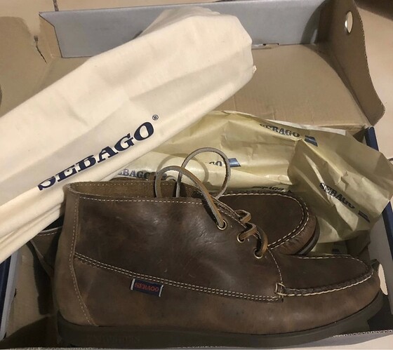 Sebago montantes en 41.5 (vaut pour un 41 selon moi). Câest des Campside, mais sur semelle plus fine (pas les semelles vibram ou commando).