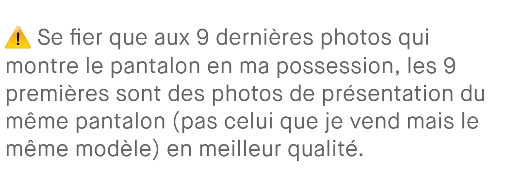 En gros les 9 premiĂšres photos câest le mĂȘme modĂšle mais en bon Ă©tat et les autres câest celui quâil met en vente en moins bon Ă©tat. Si tu fais pas gaffe tu penses que les premiĂšres photos correspondent Ă la qualitĂ© du produit alors que non