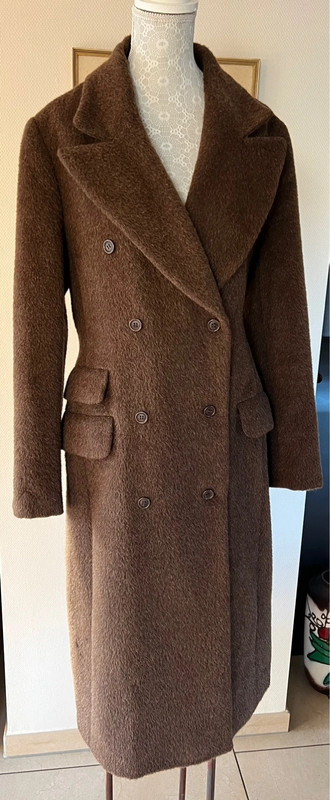 Croisé 4 boutons + martingale mohair/alpaga effet poils de chameau bordeaux en L, 120e