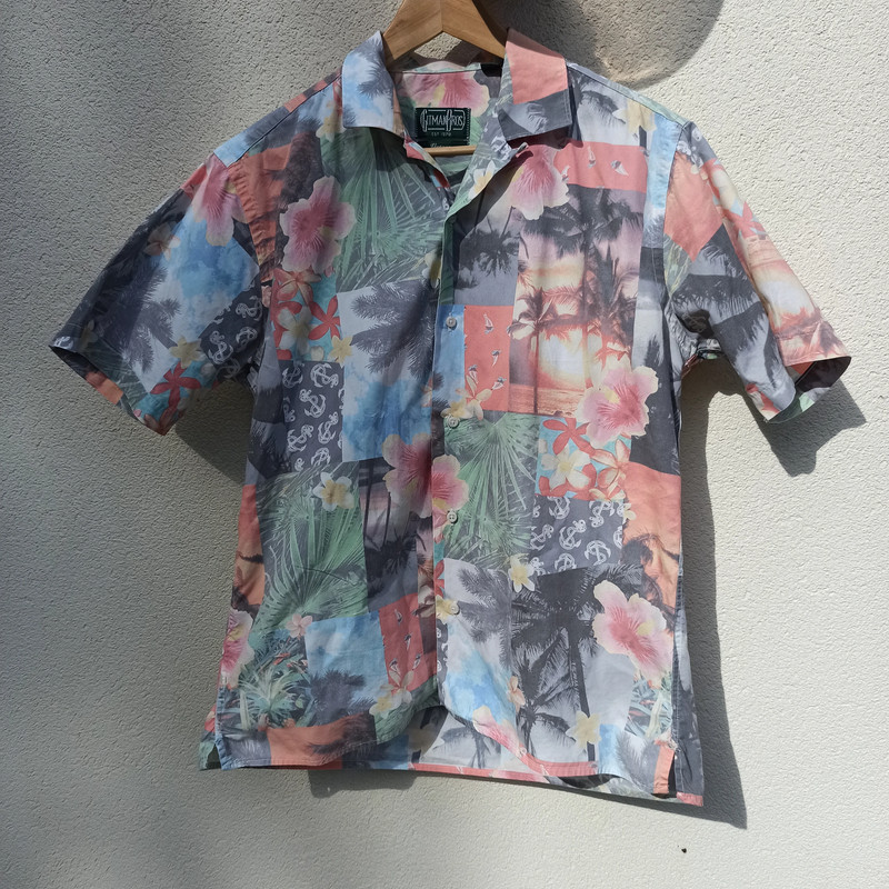 motif fleur d’hibiscus et feuille de palmier sur fond écru-beige
