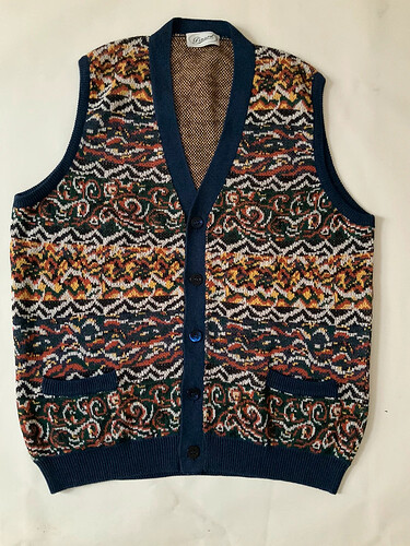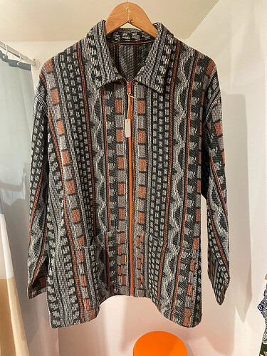 Cool veste à motifs vintage, zippée, grand col et jacquard contrastant, L, 30e