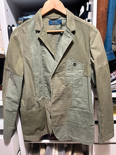 Blazer patchwork HBT RL qui pope rarement, surtout a ce prix. Les itĂ©rations des annĂ©es suivantes nâont pas la poche utility mais une normale et des inscriptions partout.