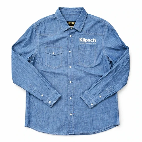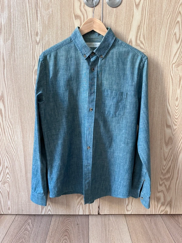 Chemise western qui semble ĂȘtre en lin ou en Chambray, je trouve la trame intĂ©ressante.
